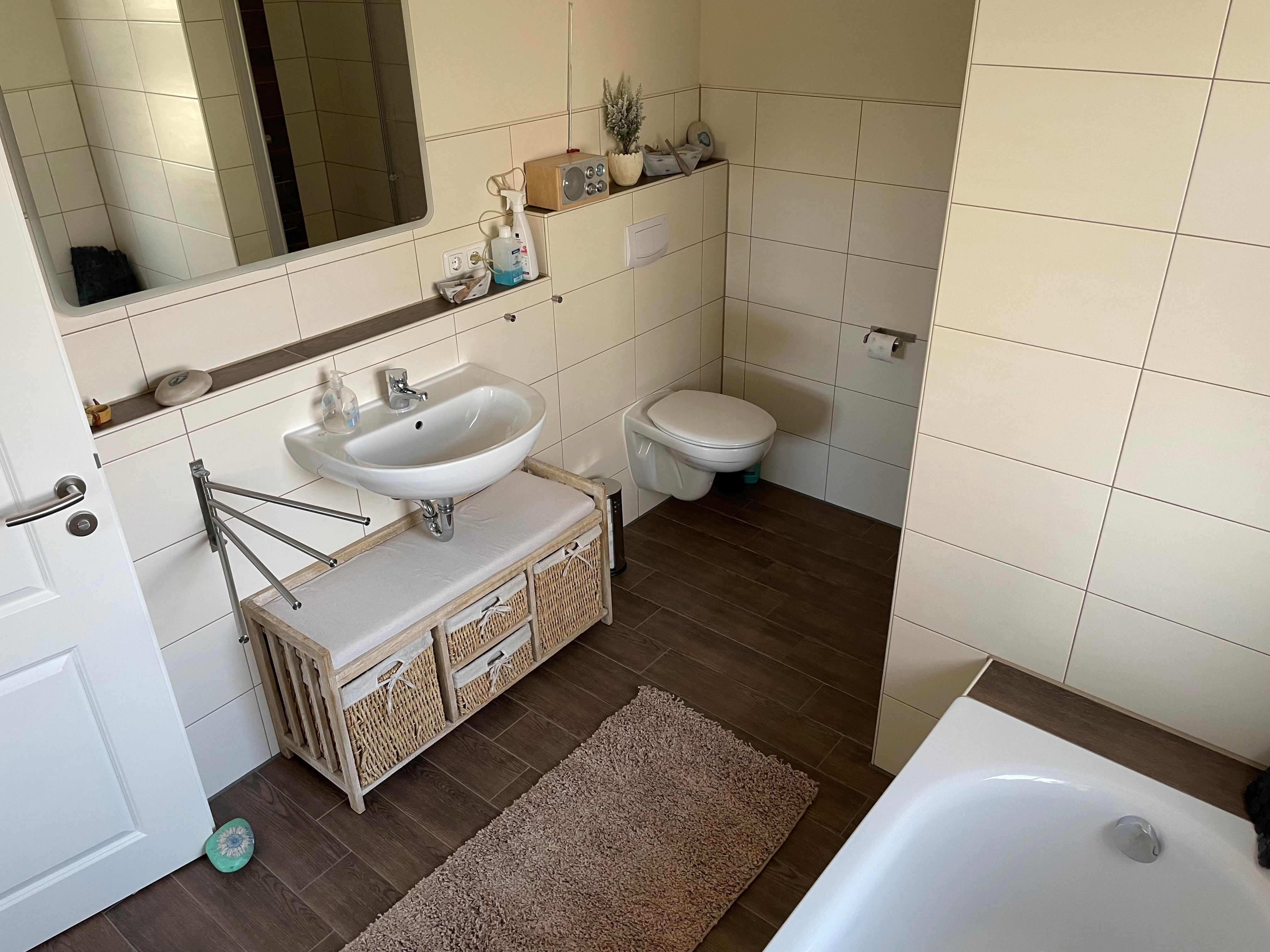 Die Küche ist offen gestaltet und voll ausgestattet mit Ceranfeld, Backofen, Kühl- und Gefrierkombination, Geschirrspüler, Mikrowelle, Toaster, Wasserkocher, sowie Geschirr und Besteck. Für Kaffeeliebhaber ist ein Kaffeeautomat vorhanden. Ein großer Tisch lädt zum gemeinsamen essen ein. Eine gemütliche Couch, ein großer Fernseher und Zeitgemäße Einrichtung garantieren einen hohen Erholungswert. Das Schlafzimmer ist mit einem Doppelbett ausgestattet. Fernseher, Kleiderschrank, Nachttische mit Nachtlampen komplettieren die Einrichtung. Bettwäsche und Handtücher sind im Preis enthalten. Das geräumige Badezimmer verfügt über eine Badewanne und Dusche. Im Abstellraum seht eine Waschmaschine zur verfügung. Ein Gäste WC rundet das Ganze ab. In der ganzen Wohnung steht kostenlos WLAN zur Verfügung.