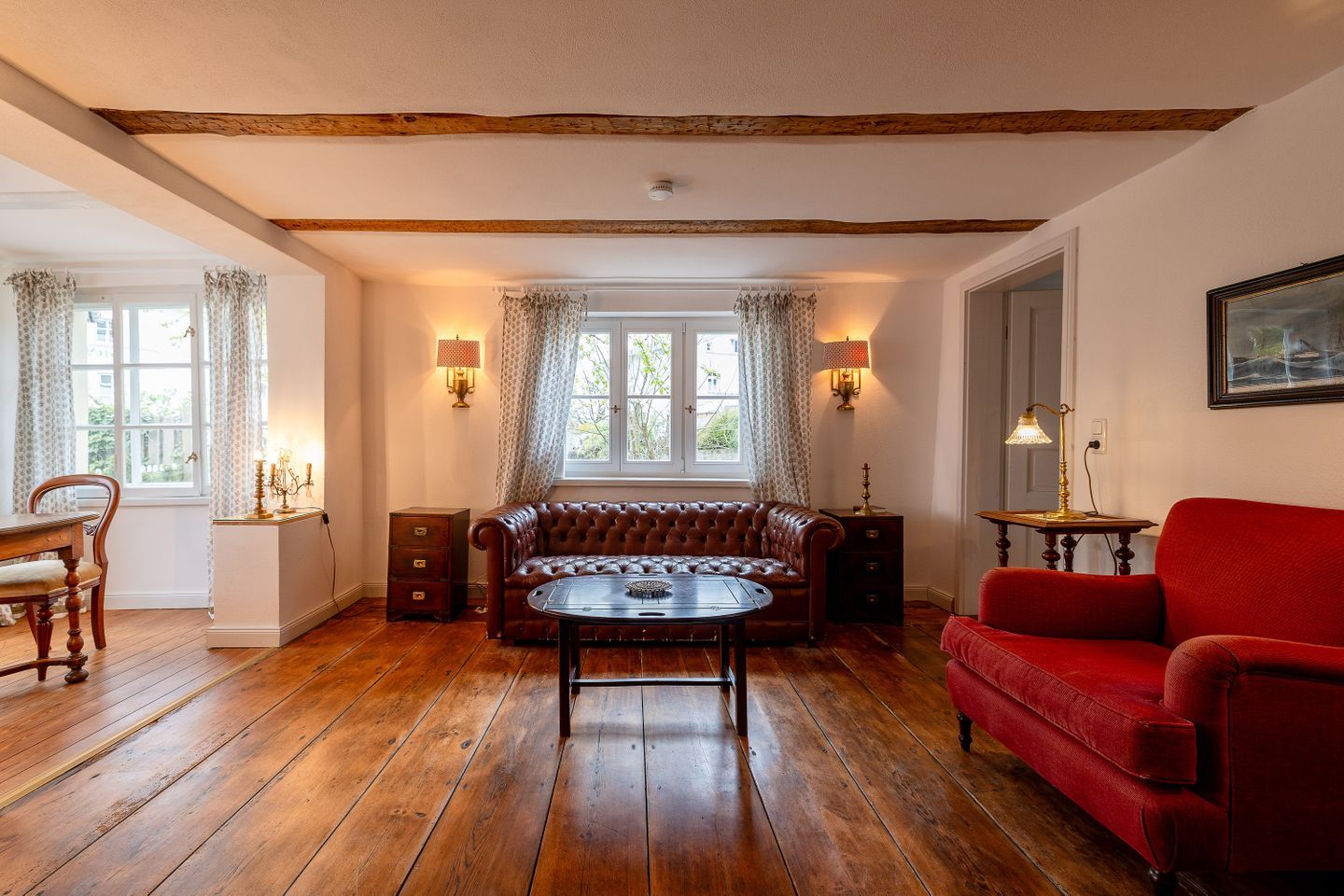 Die denkmalgeschützte Fassade erzählt Geschichten vergangener Zeiten, während sich im Inneren behaglicher Komfort harmonisch mit dem urigen Charakter alter Holzbalken, verwinkelter Räume und liebevoll erhaltener Details verbindet. Hier erleben Sie das wahre Lebensgefühl der Insel – authentisch, lebendig und herzlich.