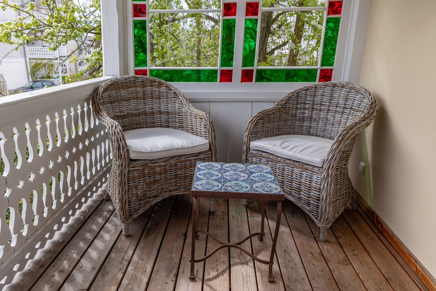 AUßENBEREICH // Parkplatz am Haus, überdachter und geschlossener Balkon ++