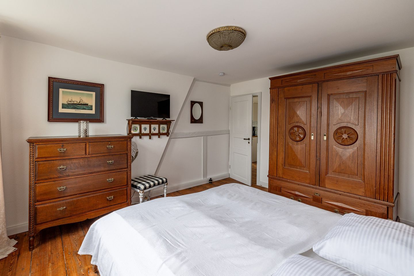 Die denkmalgeschützte Fassade erzählt Geschichten vergangener Zeiten, während sich im Inneren behaglicher Komfort harmonisch mit dem urigen Charakter alter Holzbalken, verwinkelter Räume und liebevoll erhaltener Details verbindet. Hier erleben Sie das wahre Lebensgefühl der Insel – authentisch, lebendig und herzlich.