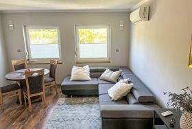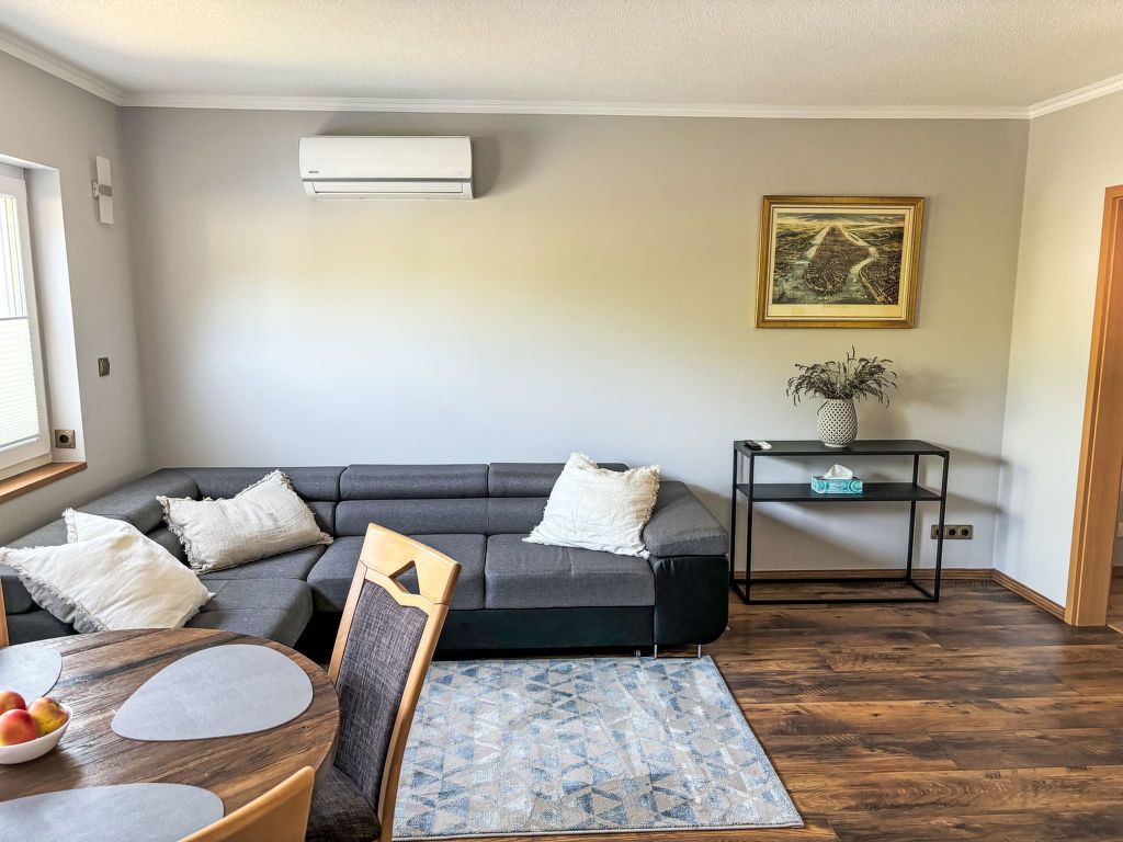 3-Zimmer-Haus 75 m2. Hell, gemütlich eingerichtet: Wohn-/Esszimmer mit Sat-TV (Flachbildschirm). 2 Zimmer, jedes Zimmer mit 1 Doppelbett. Küche (Backofen, Geschirrspüler, 4 Glaskeramikplatten, Toaster, Wasserkocher, Mikrowelle, elektrische Kaffeemaschine). Dusche/WC. E-Heizung, Klimaanlage. Grosse Terrasse. Terrassenmöbel, Gartengrill, Liegestühle (4). Zur Verfügung: Waschmaschine, Wäschetrockner, Kinderhochstuhl, Babybett, Haartrockner. Internet (WLAN, gratis). Parkplatz (überdacht). Bitte beachten: Nichtraucher-Haus. Maximal 1 Haustier/Hund erlaubt. Rauchmelder, Feuerlöscher.
