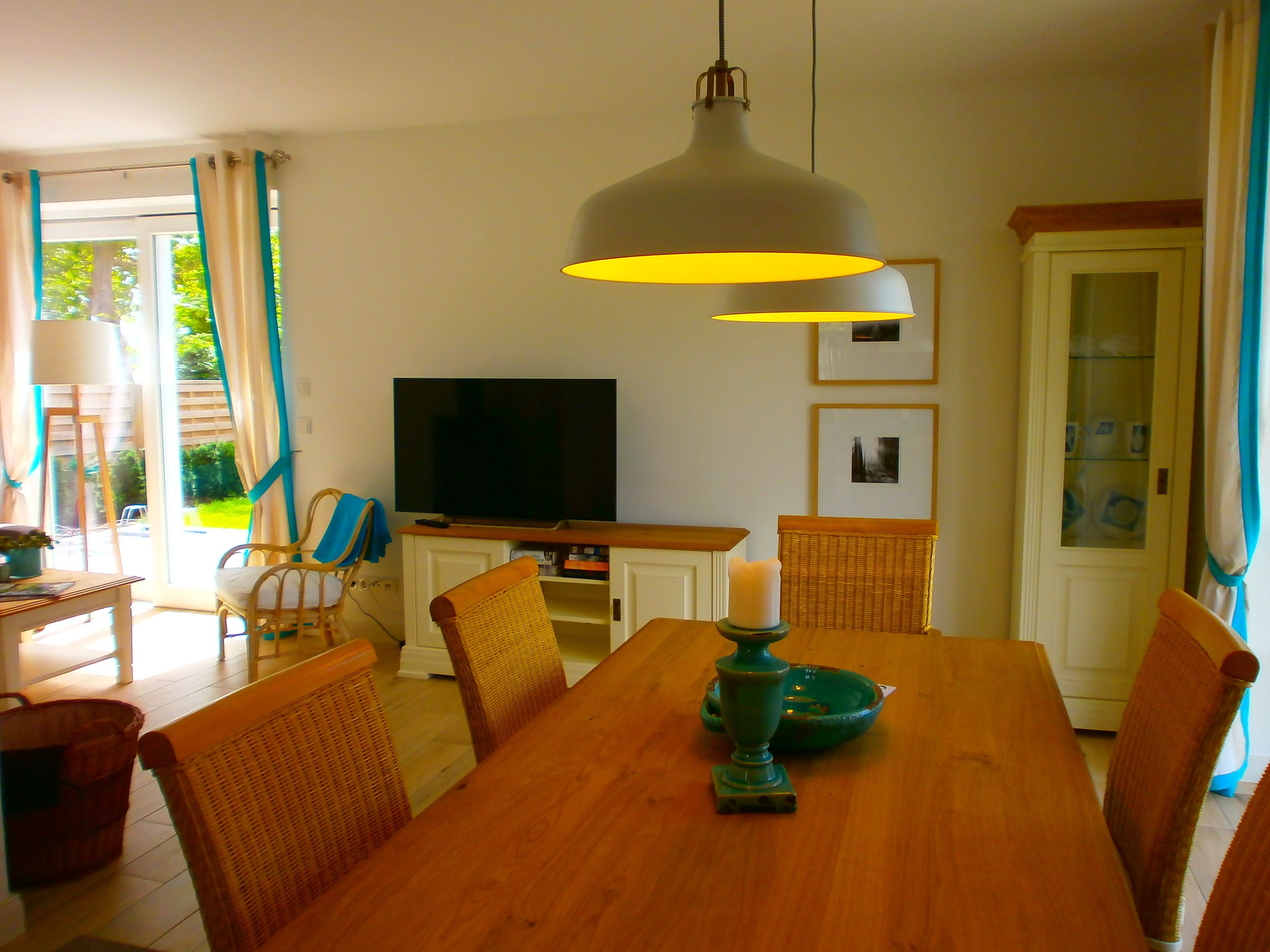 Willkommen in Ihrem Ferienhaus, das Ihnen großzügige und gemütliche Ausstattung bietet. Im Erdgeschoss erwartet Sie ein stilvoller Wohn- und Essbereich mit ausziehbarer Schlafcouch, Kamin und Flachbild-Sat-TV. Die voll ausgestattete moderne Küche lässt keine Wünsche offen und umfasst Spülmaschine, Cerankochfeld, Backofen, Mikrowelle sowie Kaffee- und Küchenmaschinen. Die Bettwäsche und Handtücher bitten wir mitzubringen. Haustiere berechnen wir mit EUR 20,00 pro Nacht.
