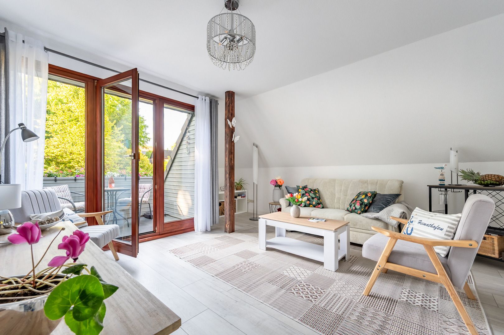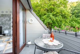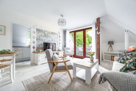 Die lichtdurchflutete und modern ausgestattete Ferienwohnung Kalina, mit viel Liebe zum Detail eingerichtet bietet auf 53 m² für ein bis vier Gäste Komfort und Gemütlichkeit. Hier können Sie die Seele baumeln lassen. Die stillvolle und modern eingerichtete Ferienwohnung ist ruhig gelegen und bietet damit Erholung pur! Das Highlight ist das gemütliche, helle Wohnzimmer mit Südbalkon, von welchem Sie einen Blick auf herrlich erholsamen Wald genießen können. Im Wohnraum steht ein Smart-TV zur Verfügung und das WLAN ist für Sie inklusive, div. Bücher und Spiele ebenso. Die Küche ist vom angrenzenden Essplatz schnell erreicht. Die Küche ist vollständig ausgestattet und beinhaltet unter anderem zusätzlich auch Espresso Kaffeemaschine, Geschirrspülmaschine, Waschmaschine, Abstellraum und ist damit die Ferienwohnung auch für längere Zeiträume geeignet. Ein großes Schlafzimmer mit einem bequemen Doppelbett (1,60er Breite) und einem zweiten zusätzlichen Bett( 90er Breite), gibt die Möglichkeit zum erholsamen Schlaf. Der Schrank im Schlafzimmer bietet reichlich Stauraum . Das Badezimmer mit Fenster und der großen Dusche, Handtuchtrockner, Föhn und WC rundet diese stylische Ferienwohnung ab. Abstellmöglichkeit für Fahrräder in einer Garage ist vorhanden.