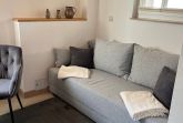 Wohnung über 2 Etagen, Wohnzimmer , Küchenzeile und GästeWC im EG , über eine Treppe geht es zum Schlafzimmer und zum Bad mit Dusche und WC.