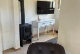 Für kalte Abende ist ein Kaminofen mit Holz vorhanden.