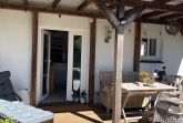 Terrasse : überdacht und ideal für sonnige Stunden im Freien