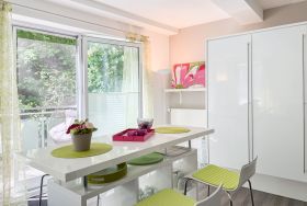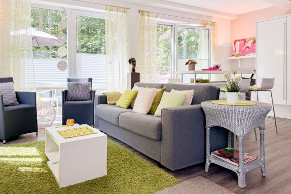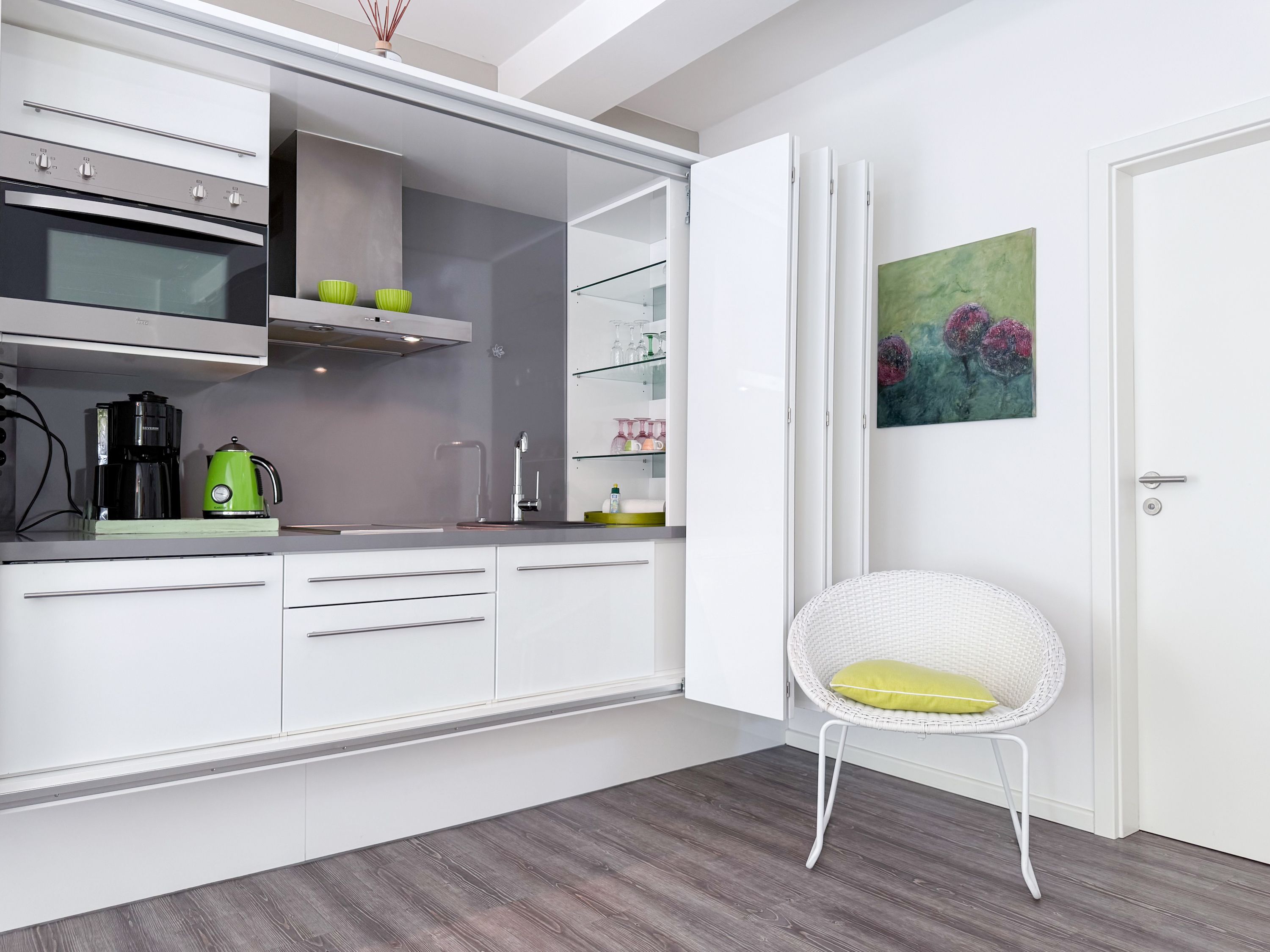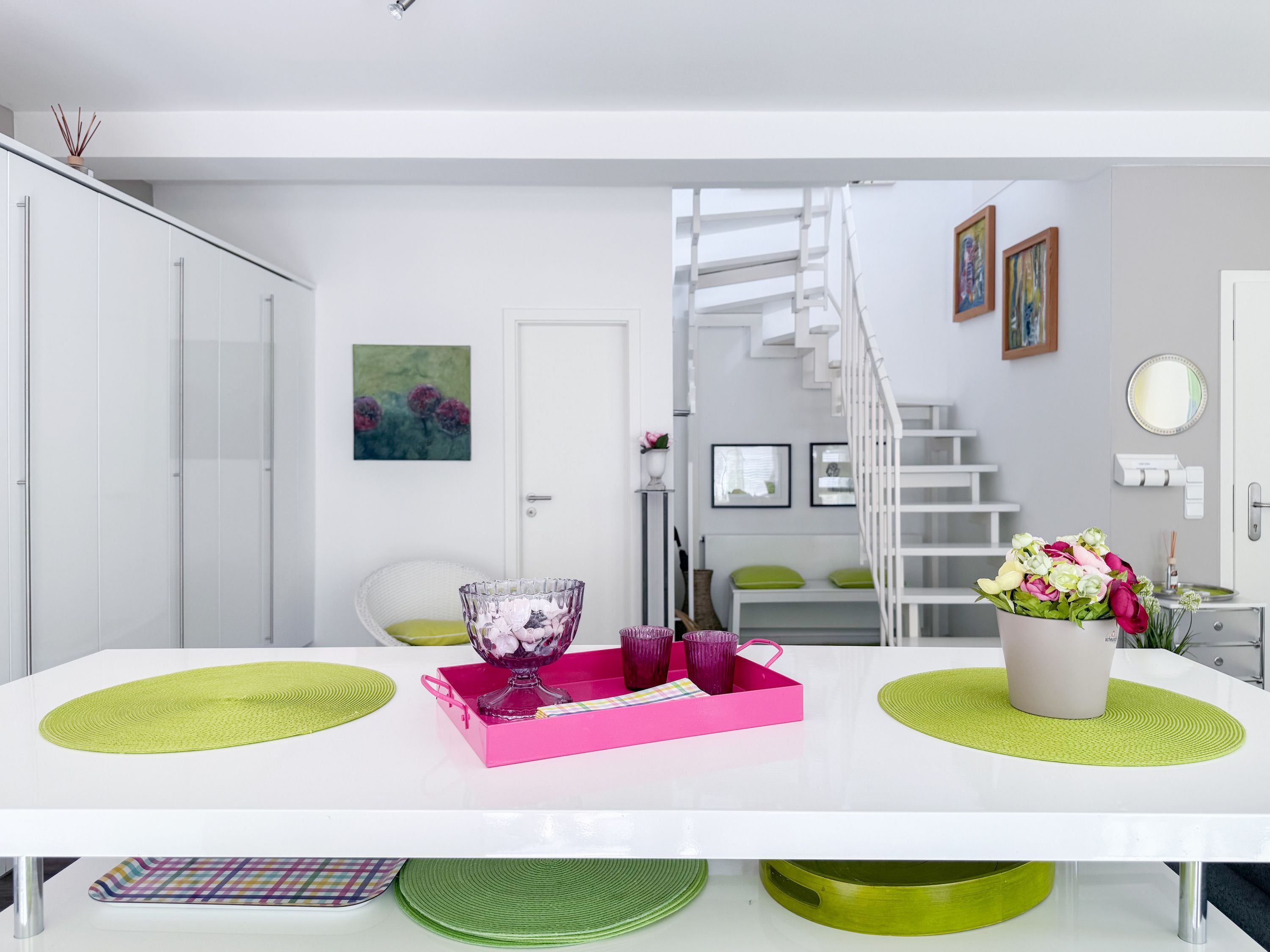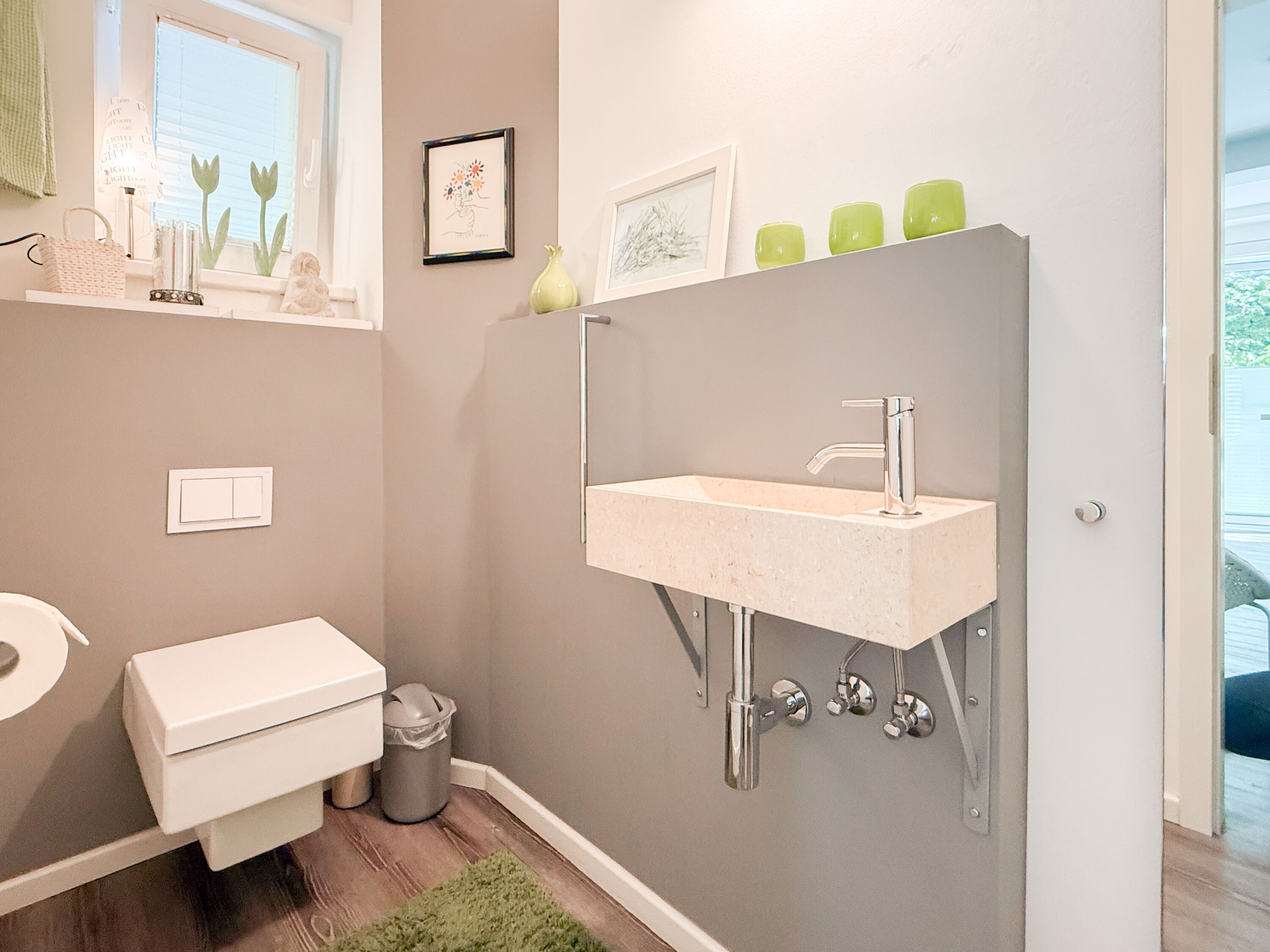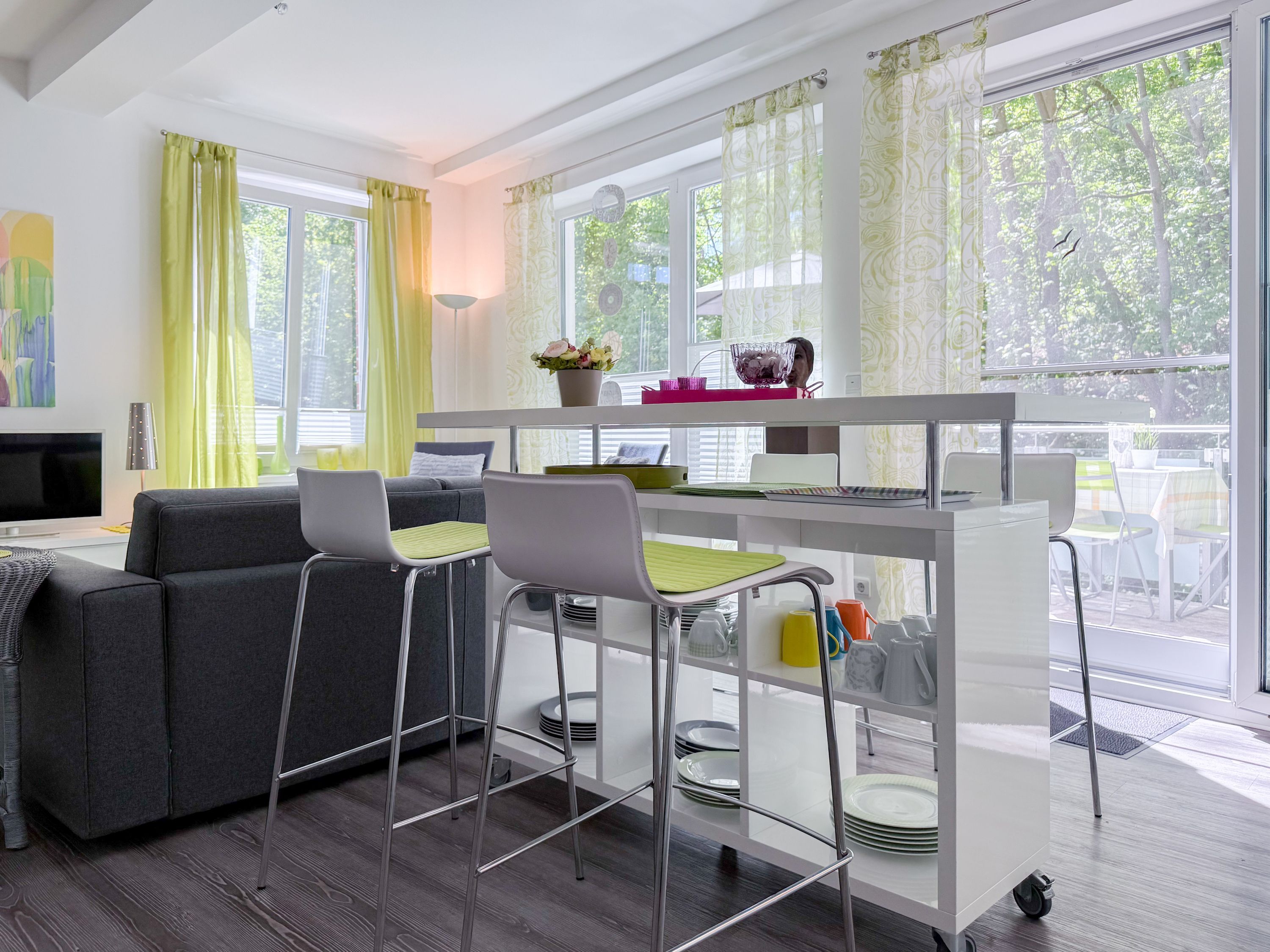 Diese Wohnung erstreckt sich über zwei Ebenen. Im unteren Bereich finden Sie einen gemütlichen Wohnbereich mit einem hochwertigen Schlafsofa, einen Essbereich sowie eine gut ausgestattete Küche. Durch eine praktische Schiebetür lässt sich der Bereich bei Bedarf verstecken. Der großzügige Balkon bietet absolute Privatsphäre und besticht durch einen herrlichen Blick ins Grüne perfekt für entspannte Stunden im Freien. Eine Garderobe und ein separates Gäste WC sind ebenfalls auf der unteren Wohnebene unterbracht. Das Dachgeschoss ist über eine Wendeltreppe zu erreichen. Dort gibt es eine kleine Galerie mit einem Schreibtisch perfekt für Workation oder kreative Pausen. Das großzügige Schlafzimmer ist mit einer Klimaanlage, einem zusätzlichen TV und Verdunkelungsvorhängen ausgestattet. Das exklusive Duschbad mit Tageslichtfenster sorgt für ein angenehmes und helles Ambiente.
