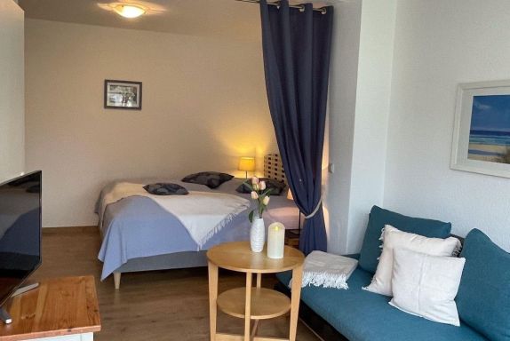 Die Ferienunterkunft Feriengarten Büsum - A04 ist eine moderne, 27 m² große Wohnung, die Platz für bis zu zwei Personen bietet. Die Nichtraucherwohnung zeichnet sich durch eine offene, komplett ausgestattete Küche mit Ceran-Kochfeld, Mikrowelle, Kühlschrank sowie Geschirr und Besteck aus. Ein gemütlicher Esstisch lädt zum gemeinsamen Speisen ein. Im hellen Wohnbereich sorgt ein komfortables Sofa für Entspannung, während ein Fernseher für Unterhaltung zur Verfügung steht. Das Badezimmer ist mit Dusche und Waschbecken ausgestattet. Zusätzlich können die Gäste die gemeinschaftlich nutzbaren Bereiche wie die schöne Terrasse und den Garten nutzen. Ein Wäscheservice erleichtert den Aufenthalt. Die zentrale Lage, nur 180 Meter vom Meer und 600 Meter vom Strand entfernt, macht diese Unterkunft ideal für romantische Kurzurlaube oder entspannende Rückzüge am Meer.