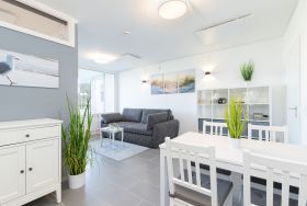 Diese stilvolle 2-Zimmer-Ferienwohnung im Erdgeschoss des Hauses Flying Dutchman an der Marina Wendtorf bietet auf 40 m² komfortablen Raum für bis zu 4 Personen.