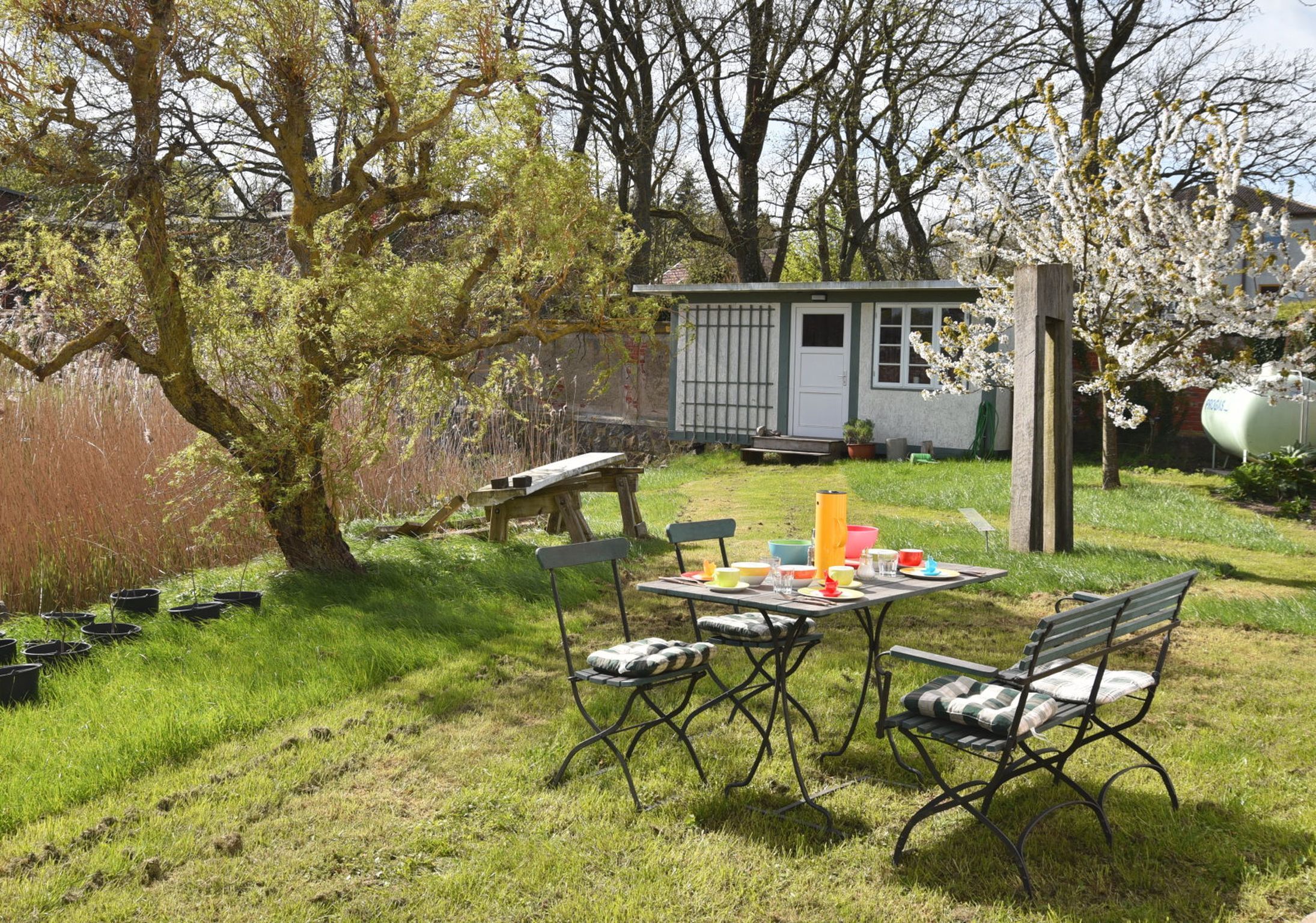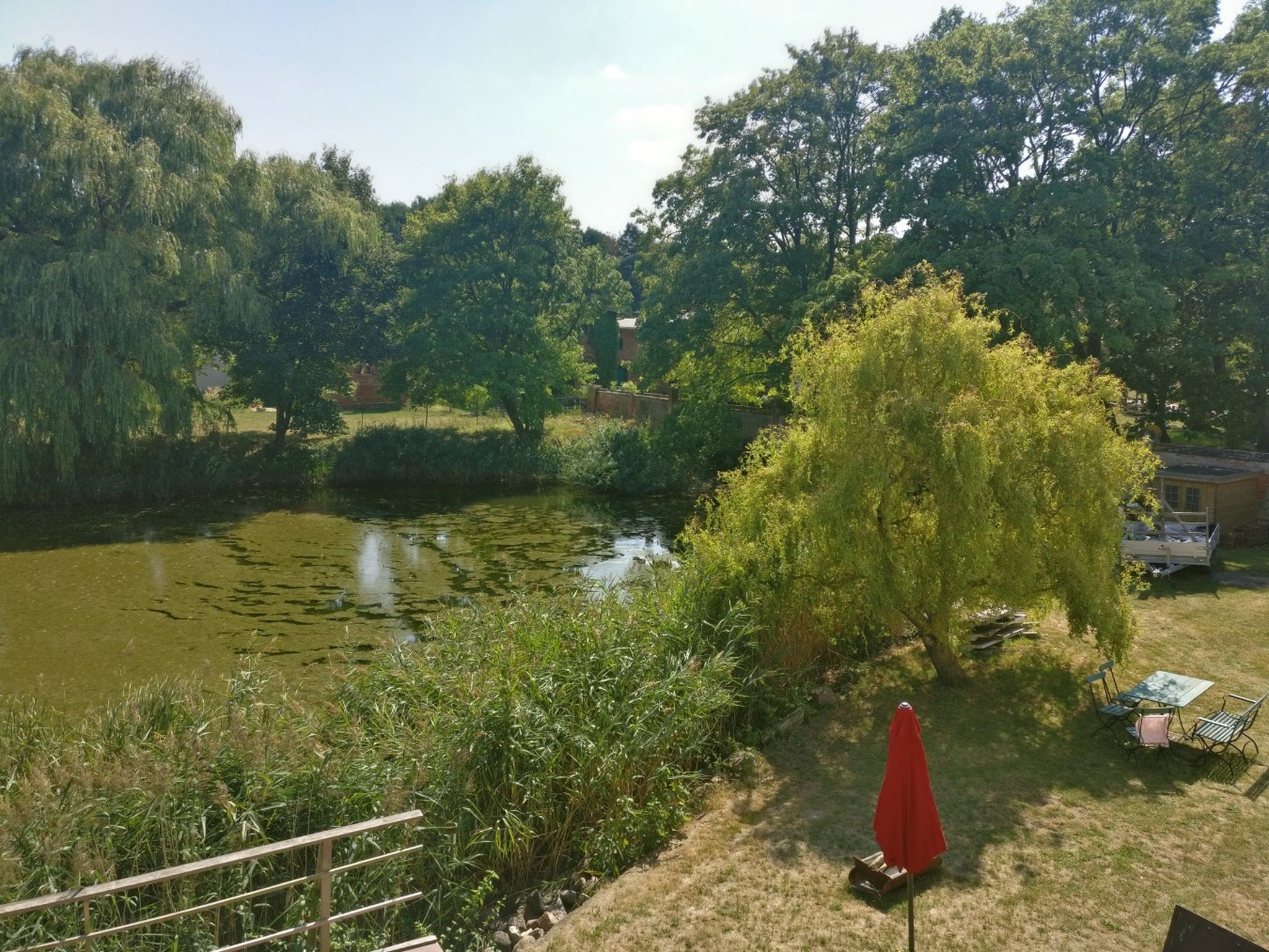 Draußen genießen Sie den liebevoll angelegten Garten mit gemütlichen Liegen, Gartenmöbeln und Grillplatz. Am kleinen Teich lässt es sich wunderbar entspannen, und frische Kräuter aus dem Garten verfeinern jedes Gericht. Ein separater Hauswirtschaftsraum mit Waschmaschine, Bügelmöglichkeit und nützlichen Alltagsgegenständen rundet das Angebot ab.