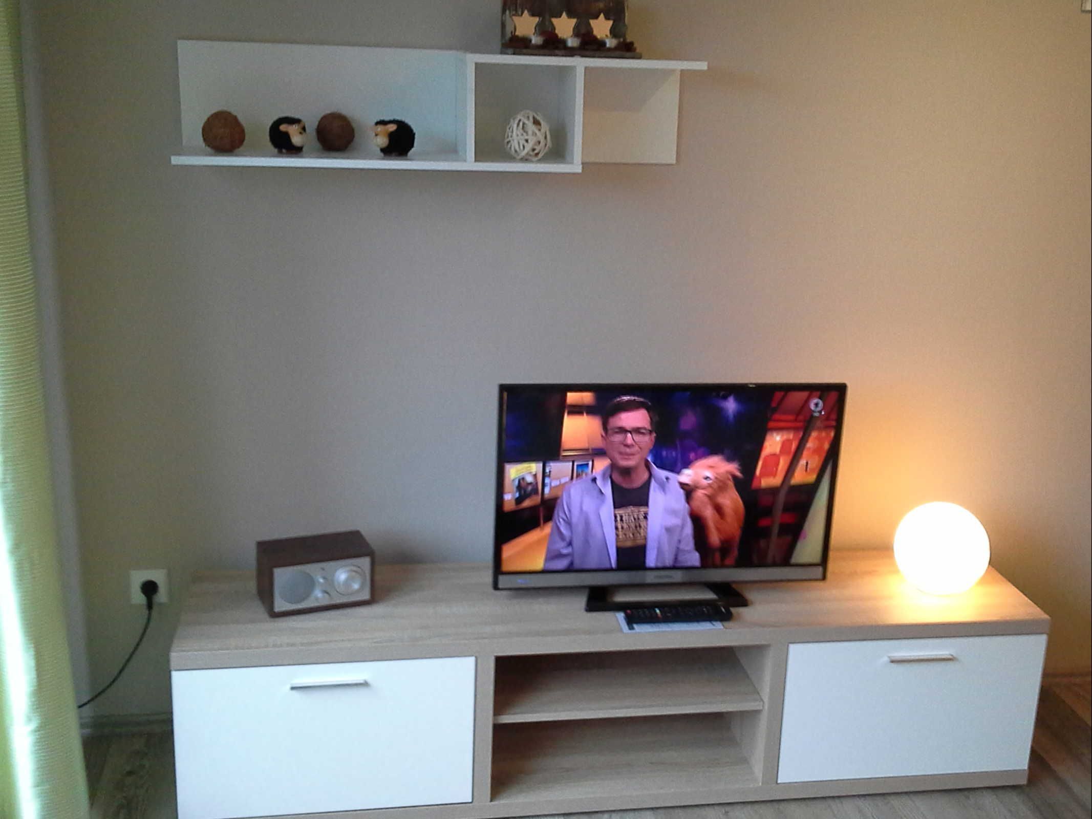 • Bequemes Doppelbett, Nachttische mit Lampen und Radio mit CD-Player, Kleiderschrank mit Ganzkörperspiegel, Kinderreisebett und Hochstuhl bei Bedarf