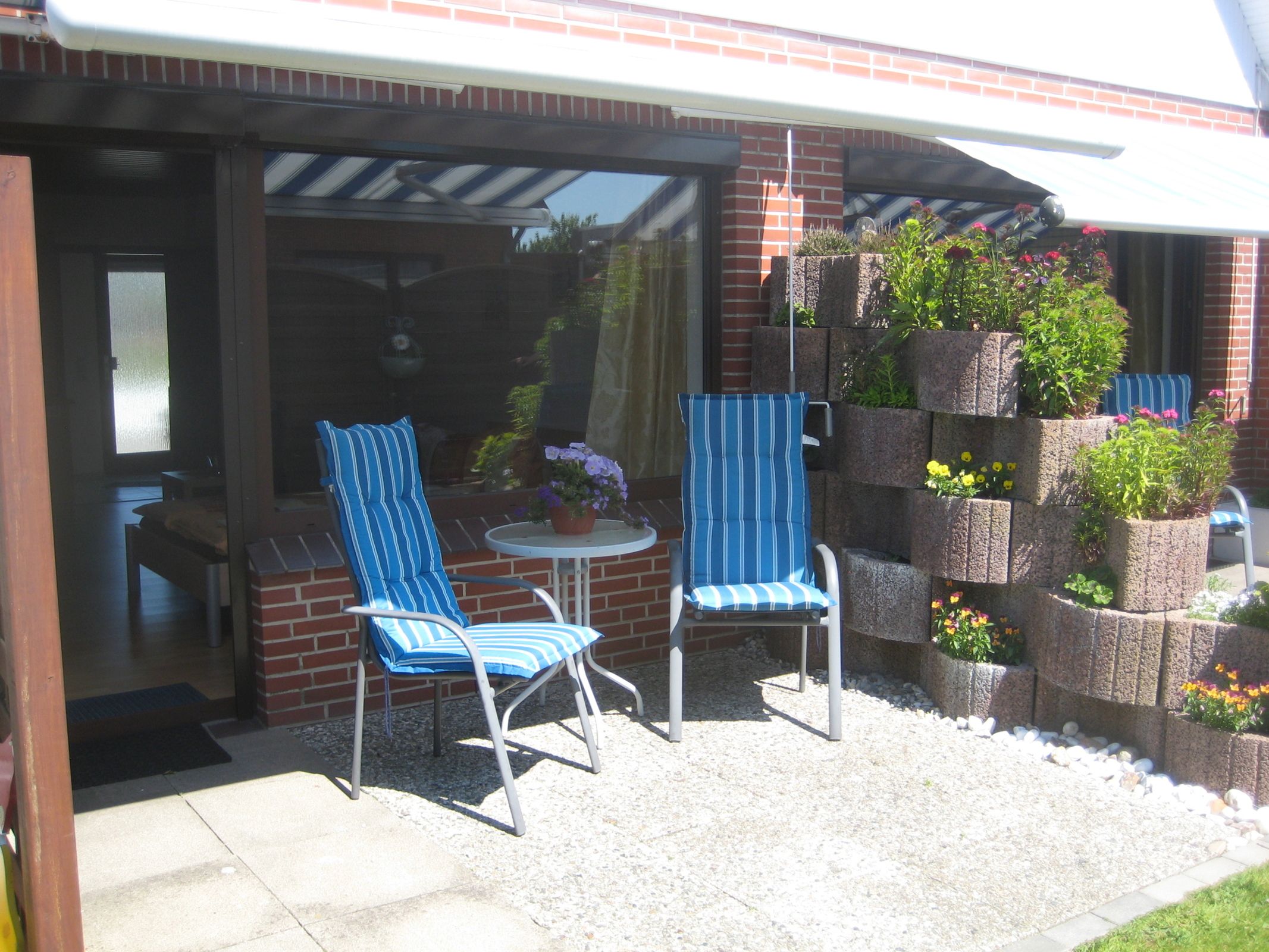 • Abgeschirmte Südterrasse mit Markise und Gartenmöbeln