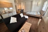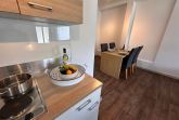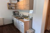 Die Ferienwohnung erstreckt sich über 35 m² und ist voll ausgestattet, um Ihnen den Aufenthalt so angenehm wie möglich zu gestalten. Die offene Küche verfügt über alle notwendigen Utensilien, darunter einen Herd mit 2 Platten, einen Min-Backofen, eine Mikrowelle sowie eine Spülmaschine. Ein Essbereich ist ebenfalls vorhanden, wo Sie gemeinsam Ihre Mahlzeiten genießen können. Für den kleinen Hunger zwischendurch finden Sie in der Küche einen Kühlschrank mit Gefrierfach, einen Wasserkocher und eine Kaffeemaschine.