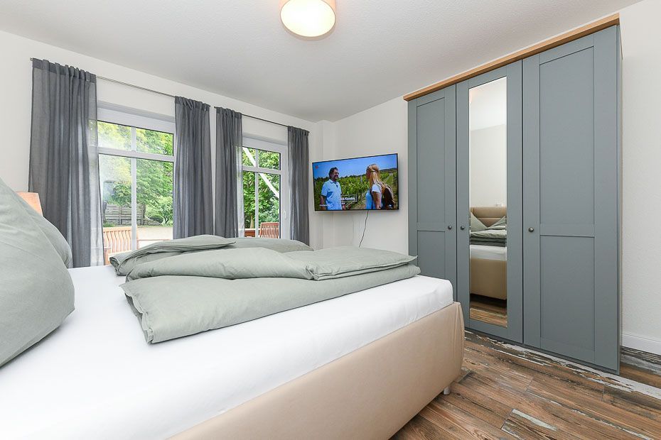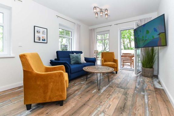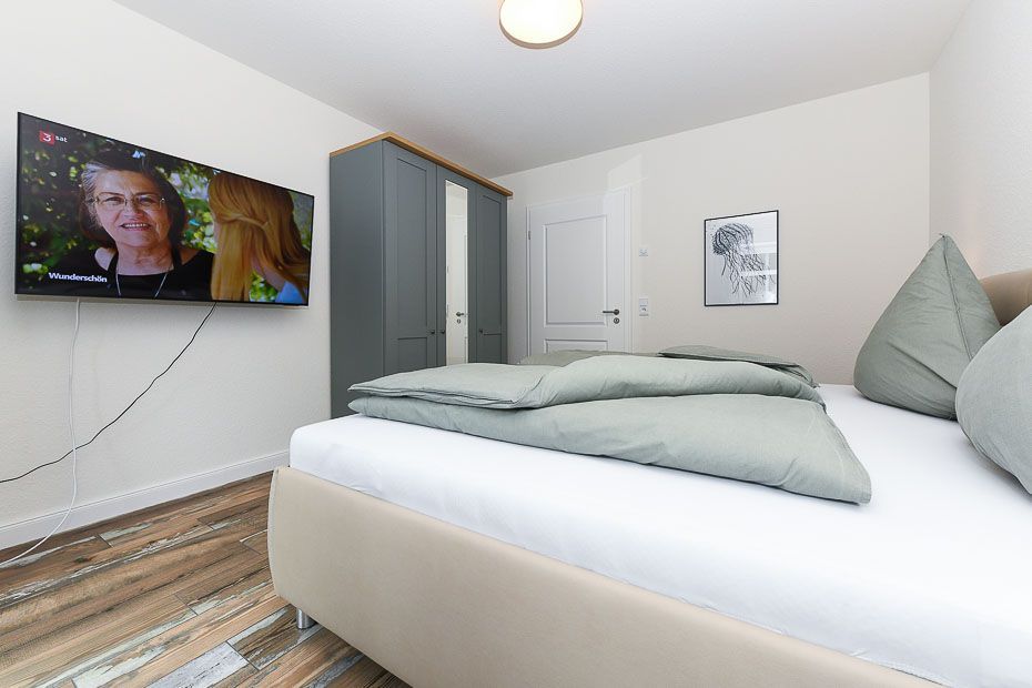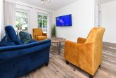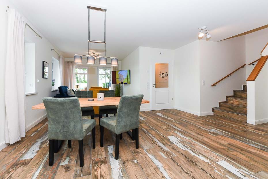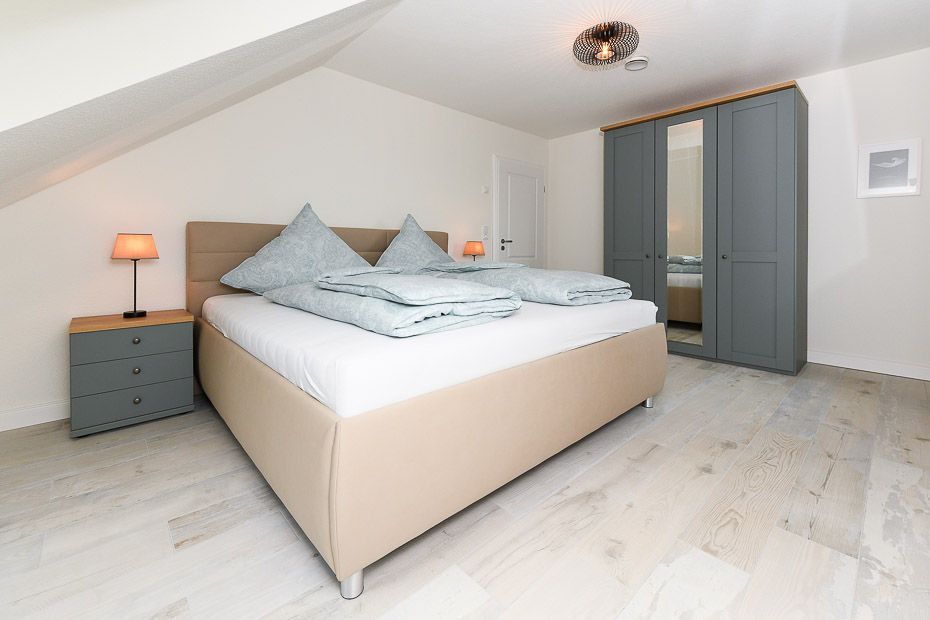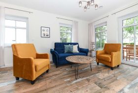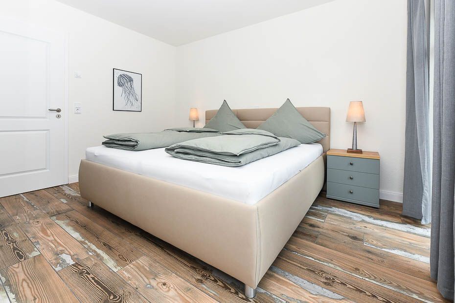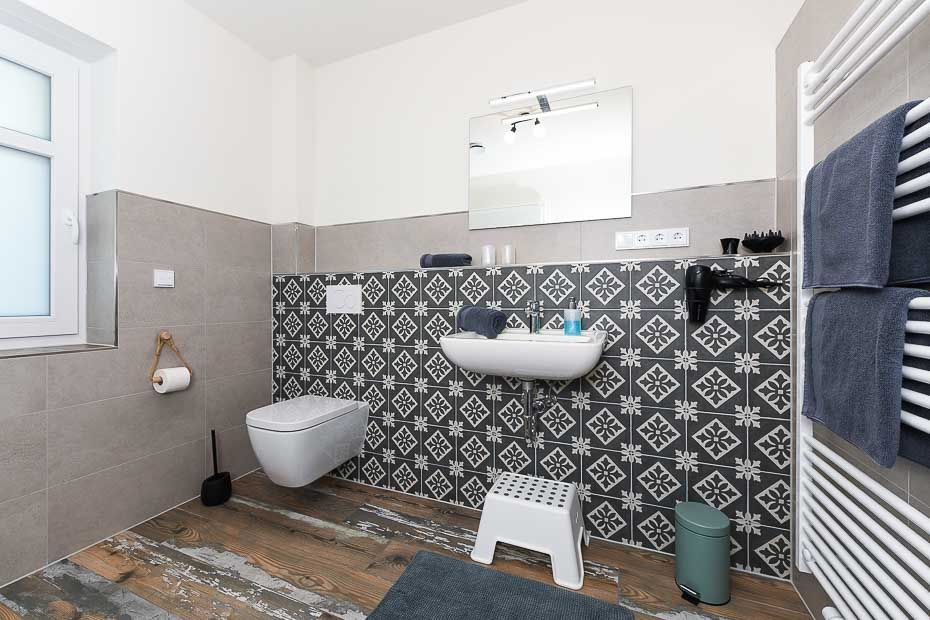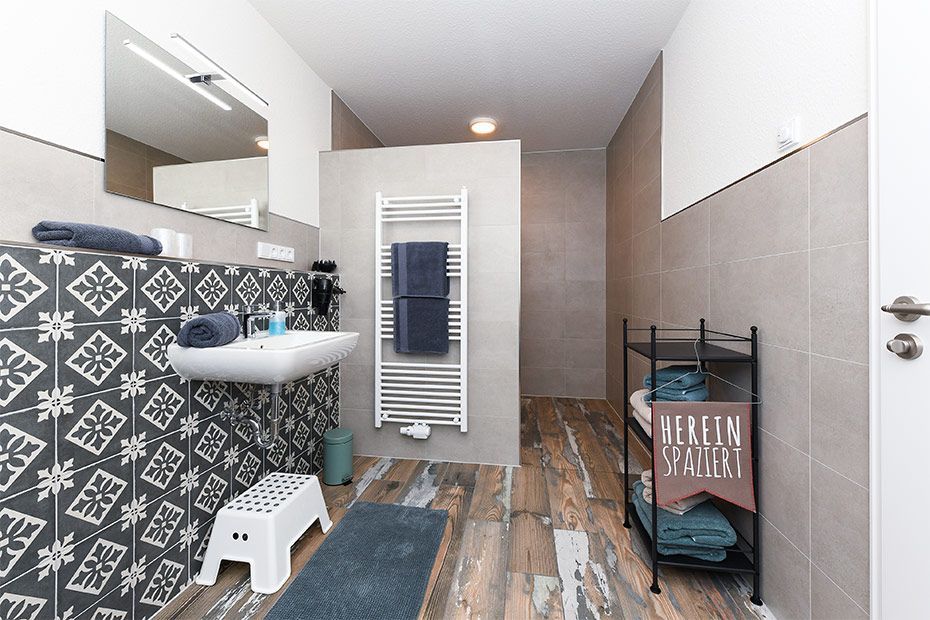 Größe ca. 120 Quadratmeter, Wohnraum mit integrierter Küche, Schlafzimmer, zweites separates Schlafzimmer/Kinderzimmer, drittes separates Schlafzimmer/Kinderzimmer, Badezimmer mit Dusche, Waschtisch und WC, zweites Badezimmer mit Dusche, Waschtisch und WC, Erdgeschoss, Obergeschoss, behindertenfreundlich, rollstuhlfreundlich, optimal für 2 bis 6 Personen.
