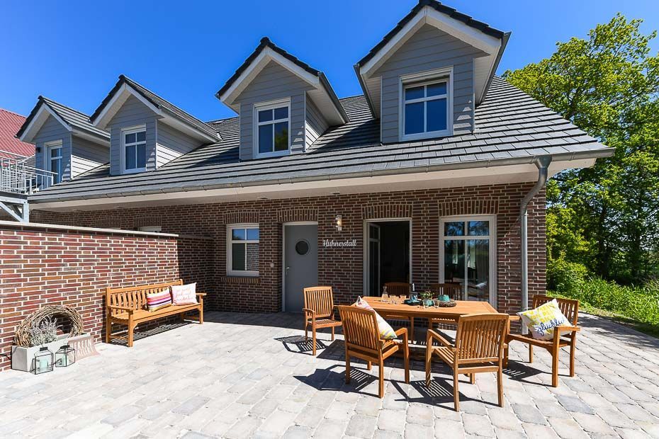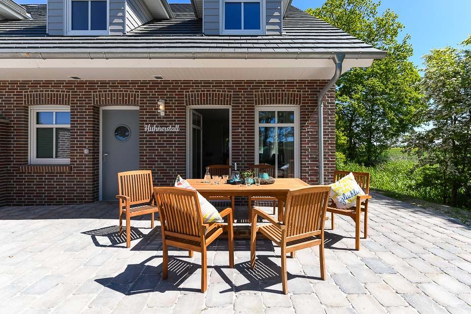 Die Ferienwohnungen sind geschmackvoll, ja liebevoll von uns für Sie gestaltet, komfortabel eingerichtet und technisch hervorragend ausgestattet. Es gibt z. B. Geschirrspülmaschinen, Mikrowellen und Sie können unsere Waschmaschine und unseren Wäschetrockner verwenden. Natürlich gibt es auf und rund um den Hof sehr viel Platz und mehrere Terrassen- und Gartenecken mit Gartenmöbeln.