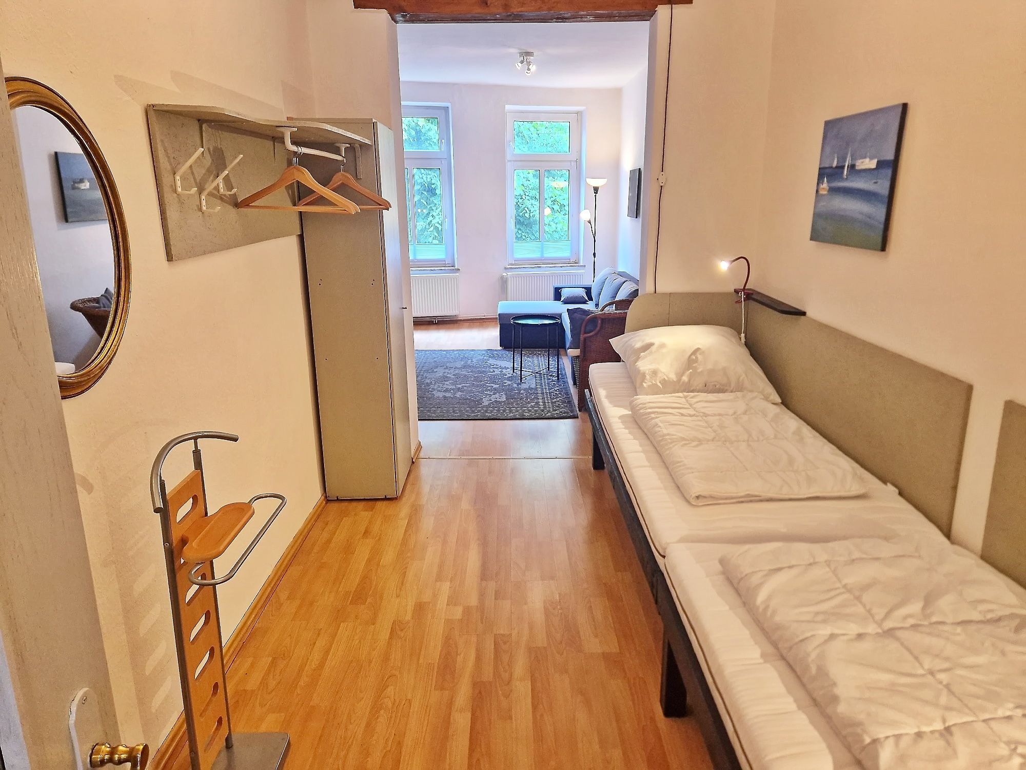 Die Wohnung ist mit allen Annehmlichkeiten und originellen Einzelmöbeln ausgestattet. An den Wänden hängen große und kleine Originalgemälde mit Wismar- und Ostseeassoziationen.