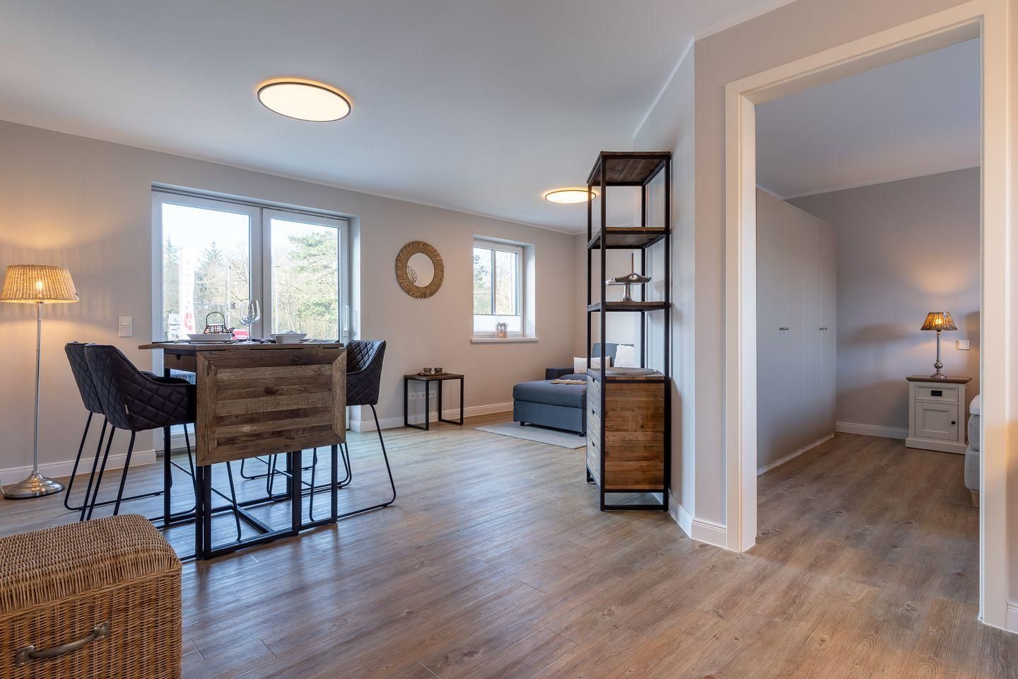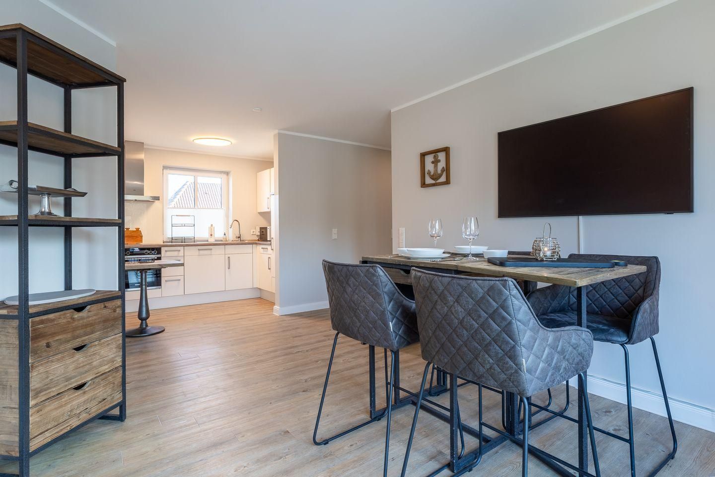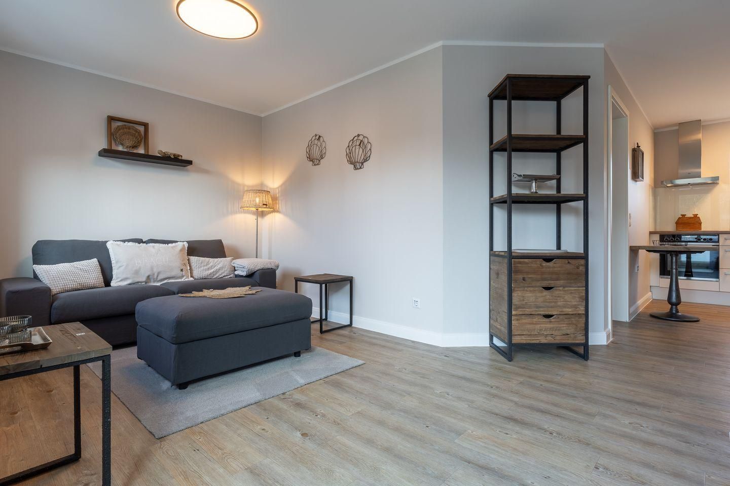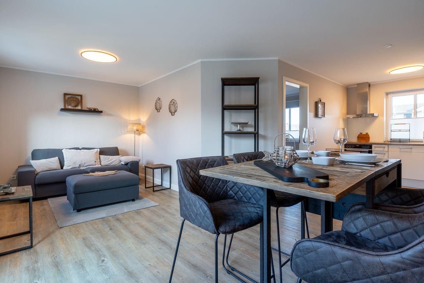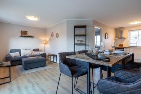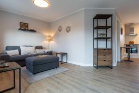 Diese moderne und stilvoll eingerichtete Wohnung bietet auf 60 m² genügend Platz für bis zu drei Personen. Der offene Wohnbereich verbindet Küche und Wohnzimmer harmonisch und ist der perfekte Ort, um sich nach einem erlebnisreichen Tag zu entspannen.