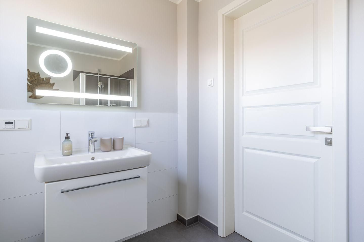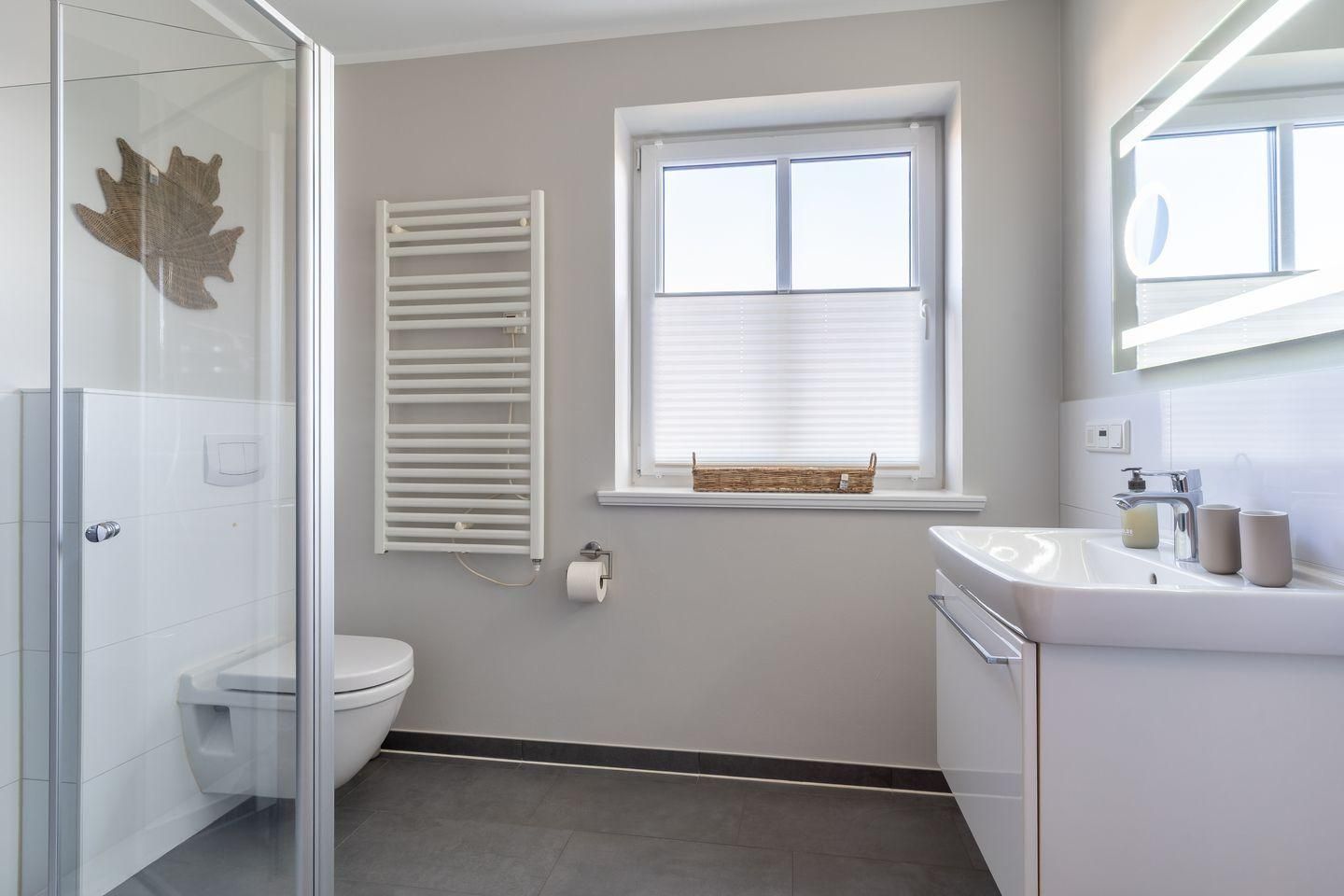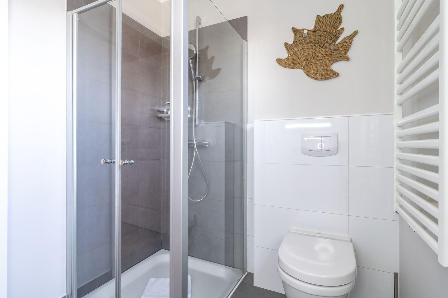 Das Badezimmer ist mit einer modernen Dusche ausgestattet und bietet alles, was Sie für Ihr persönliches Wohlbefinden benötigen. Zusätzlich stehen Ihnen Waschmaschine und Trockner zur Verfügung.