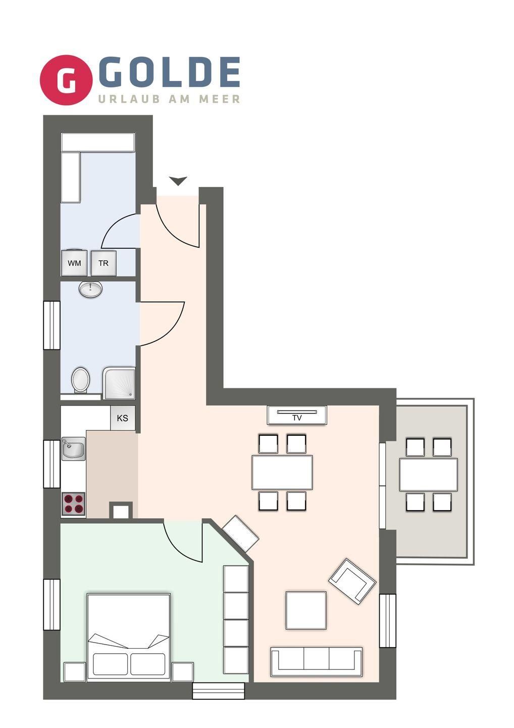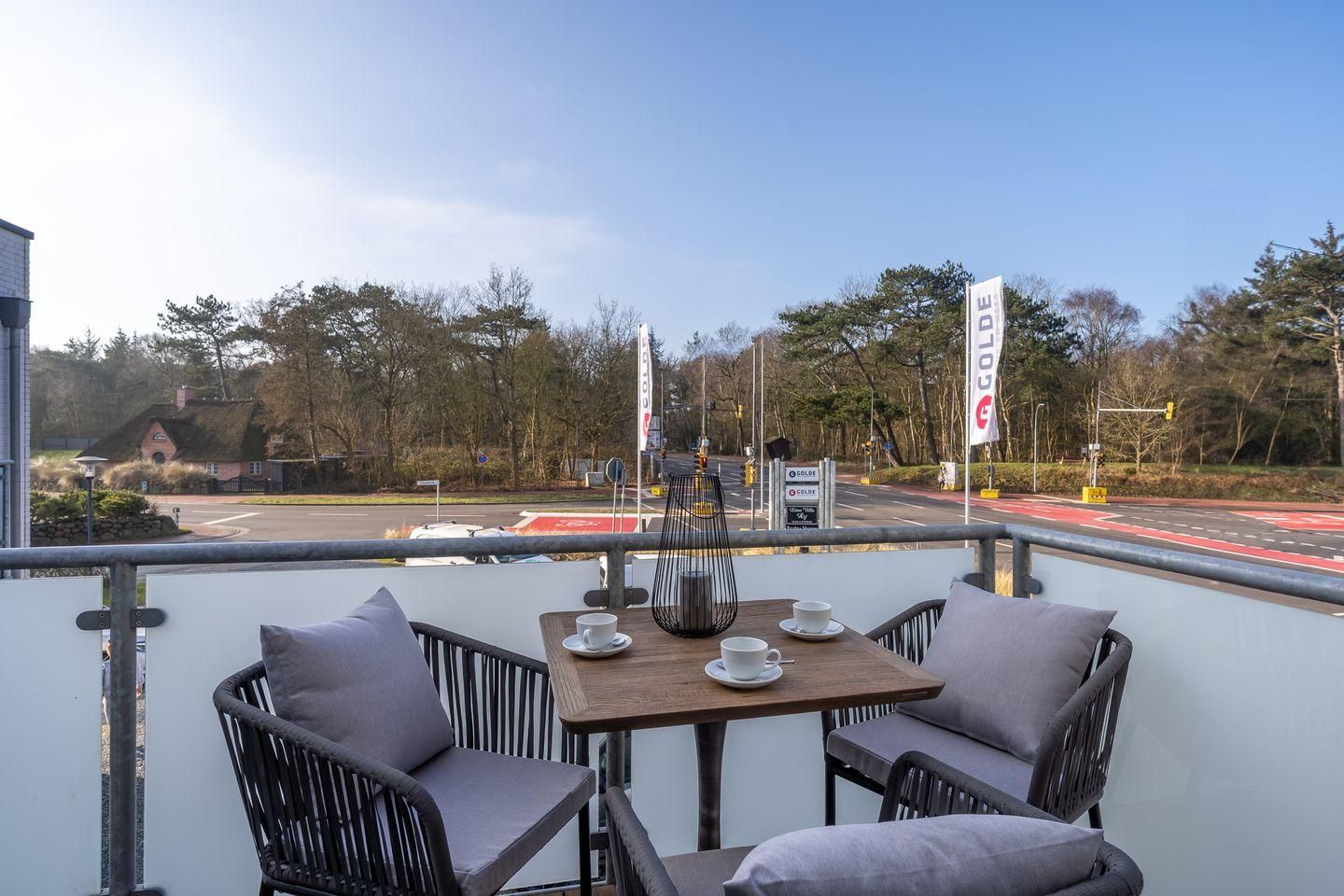 Ein weiteres Highlight dieser Ferienwohnung ist der hübsche Balkon, auf dem Sie entspannte Stunden genießen können. Lassen Sie sich von der frischen Nordseeluft inspirieren, während Sie Ihre Morgenkaffee oder einen Sundowner am Abend auf dem Balkon genießen.