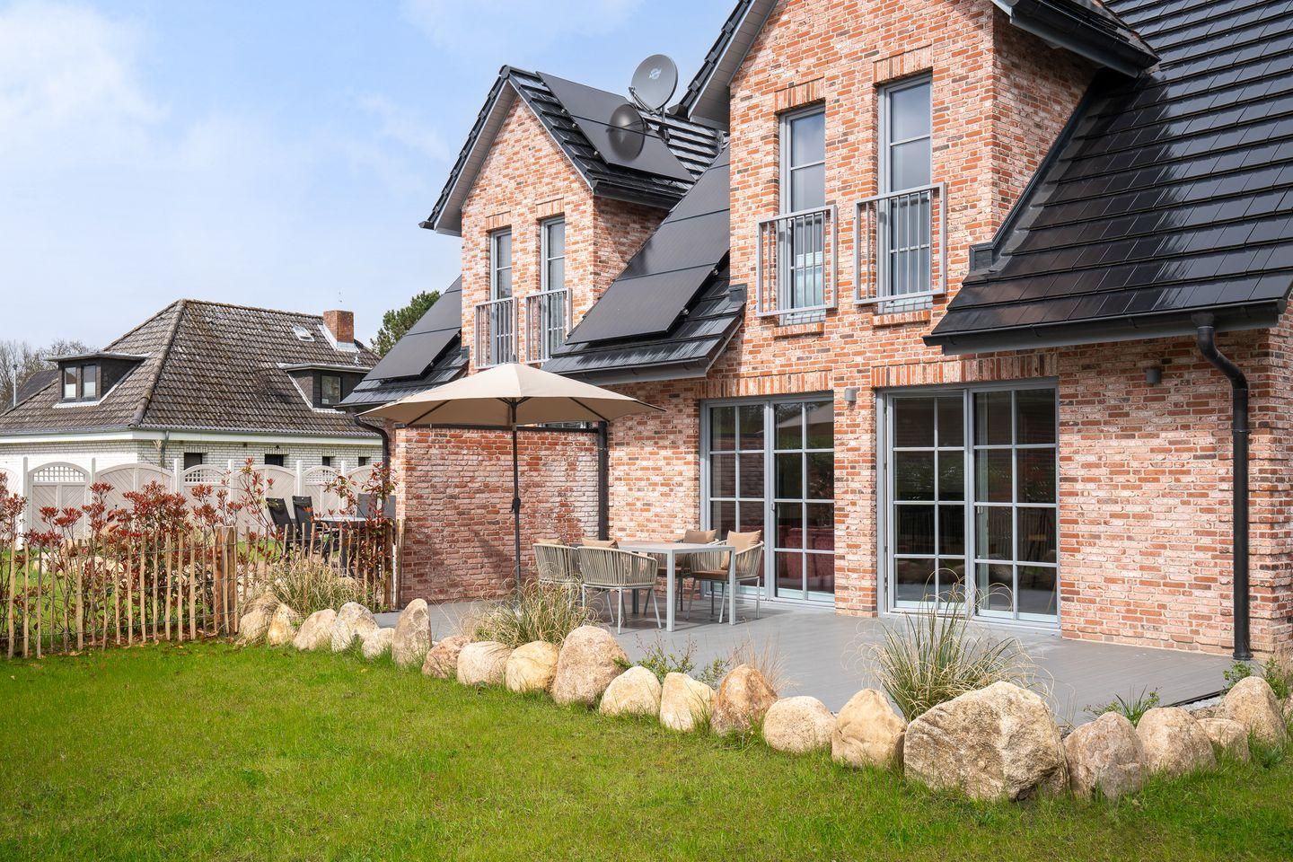 Die Terrasse im eingezäunten Garten lädt zum Entspannen ein und bietet die Möglichkeit, die frische Nordseeluft zu genießen. Ein Sichtschutz garantiert Ihnen Privatsphäre. Zudem steht Ihnen auch ein Gartenhaus zur Verfügung, wo Sie Ihre E-Bikes sicher verschließen und kostenfrei laden können.