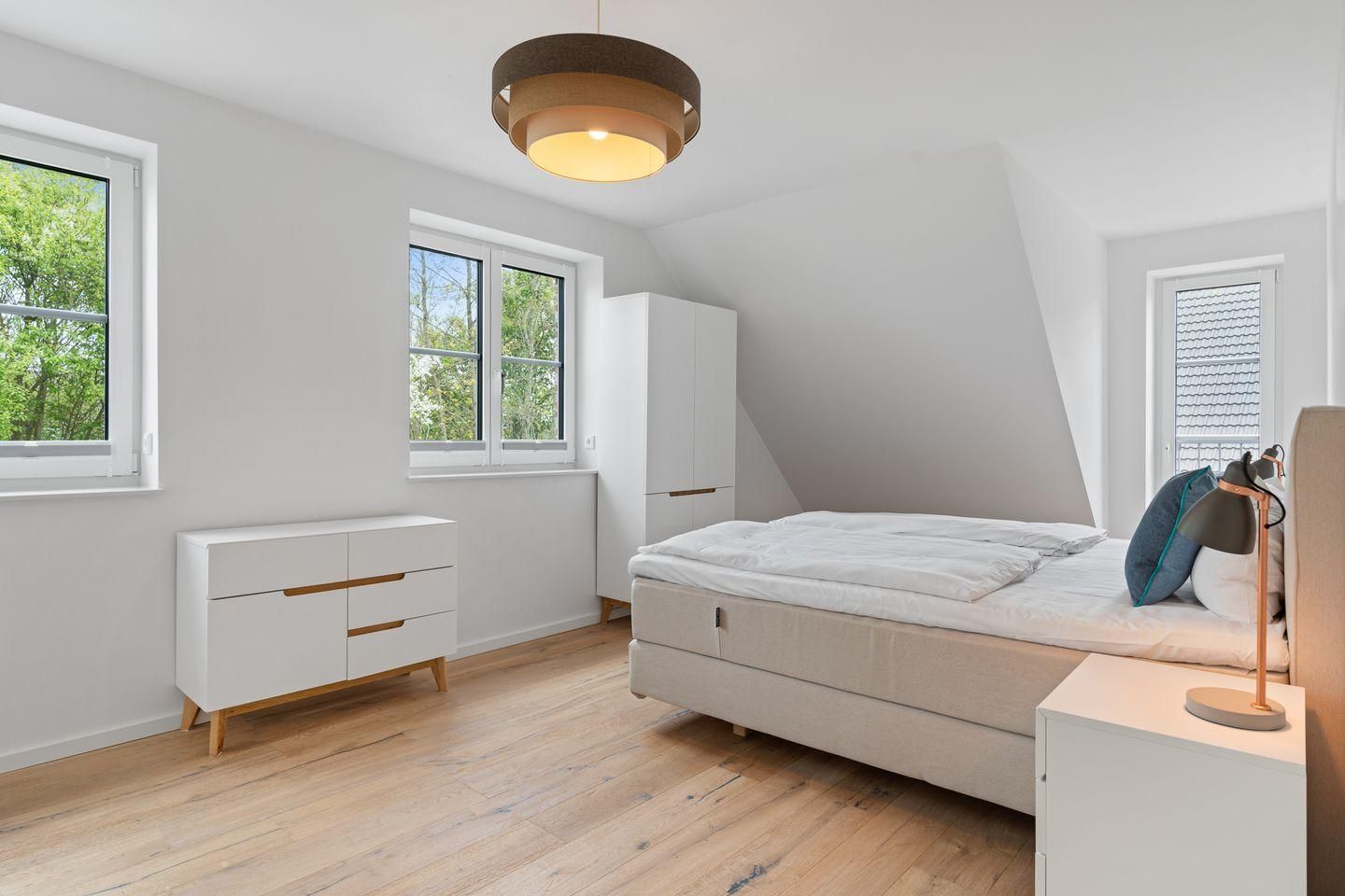Die stilvoll Schlafzimmer mit Boxspingbetten bieten Komfort und genügend Stauraum für Ihr Gepäck. Ein Schlafzimmer verfügt über ein gemütliches Doppelbett (1,80 x 2,00), während im anderen Zimmer weitere Schlafmöglichkeiten (1,40 x 2,00) zur Verfügung stehen. Die Badezimmer mit Dusche und Badewanne bieten optimalen Komfort.