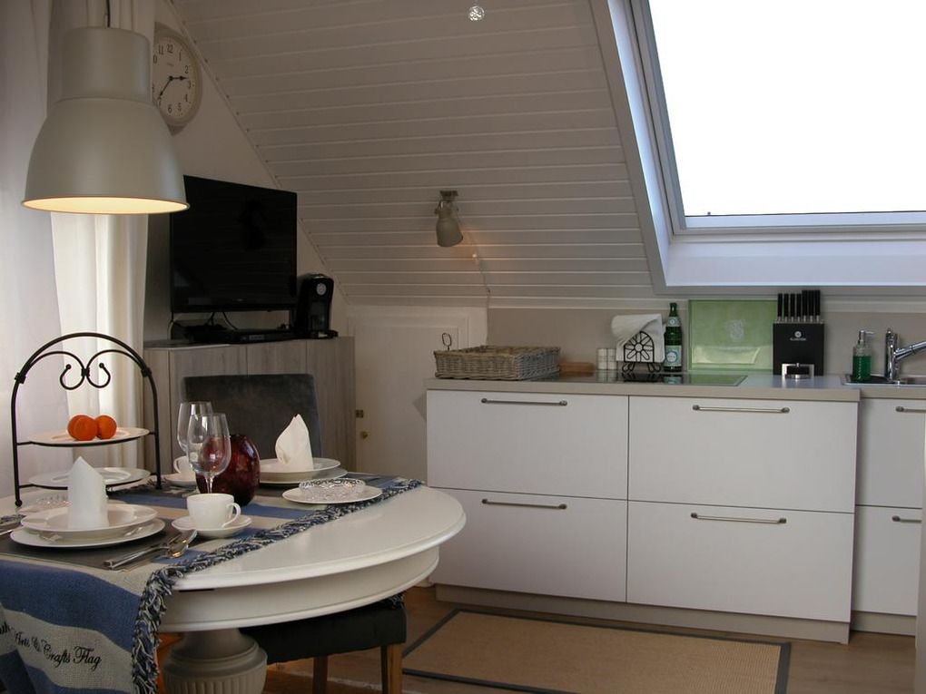 Die Eigentümer haben sich 2015 in Heiligenhafen sesshaft gemacht und unser Haus für unseren Bedarf liebevoll umgestaltet und mit ebenso liebevollen Details eine sonnendurchflutete Ferienwohnung im Dachgeschoß hergerichtet. Unser Haus befindet sich in einer sehr ruhigen Stichstraße, so das Sie den Trubel in der Shoppingmeile genießen können, aber auch genauso Ruhe zum Entspannen geniessen können. Zu den XL-Bettdecken ist die Bettwäsche kostenfrei ebenso sind Handtücher kostenfrei vorhanden. Bei uns erhält jeder Gast frisch gereinigte Kopfkissen und Bettdecken!! Wir möchten, daß Sie sich so fühlen, als würden Sie unsere ersten Gäste sein, und noch keiner vor Ihnen da war. Alles soll frisch und sauber sein, damit man sich auch wirklich richtig wohl fühlt. Wichtig ist uns, dass es Ihnen nichts ausmacht, wenn das Wetter sich nicht entscheiden kann, die Wohnung soll für einige Tage Ihr wohliger Aufenthalt/Rückzugsort sein, was auch immer das Wetter für Sie parat hält.