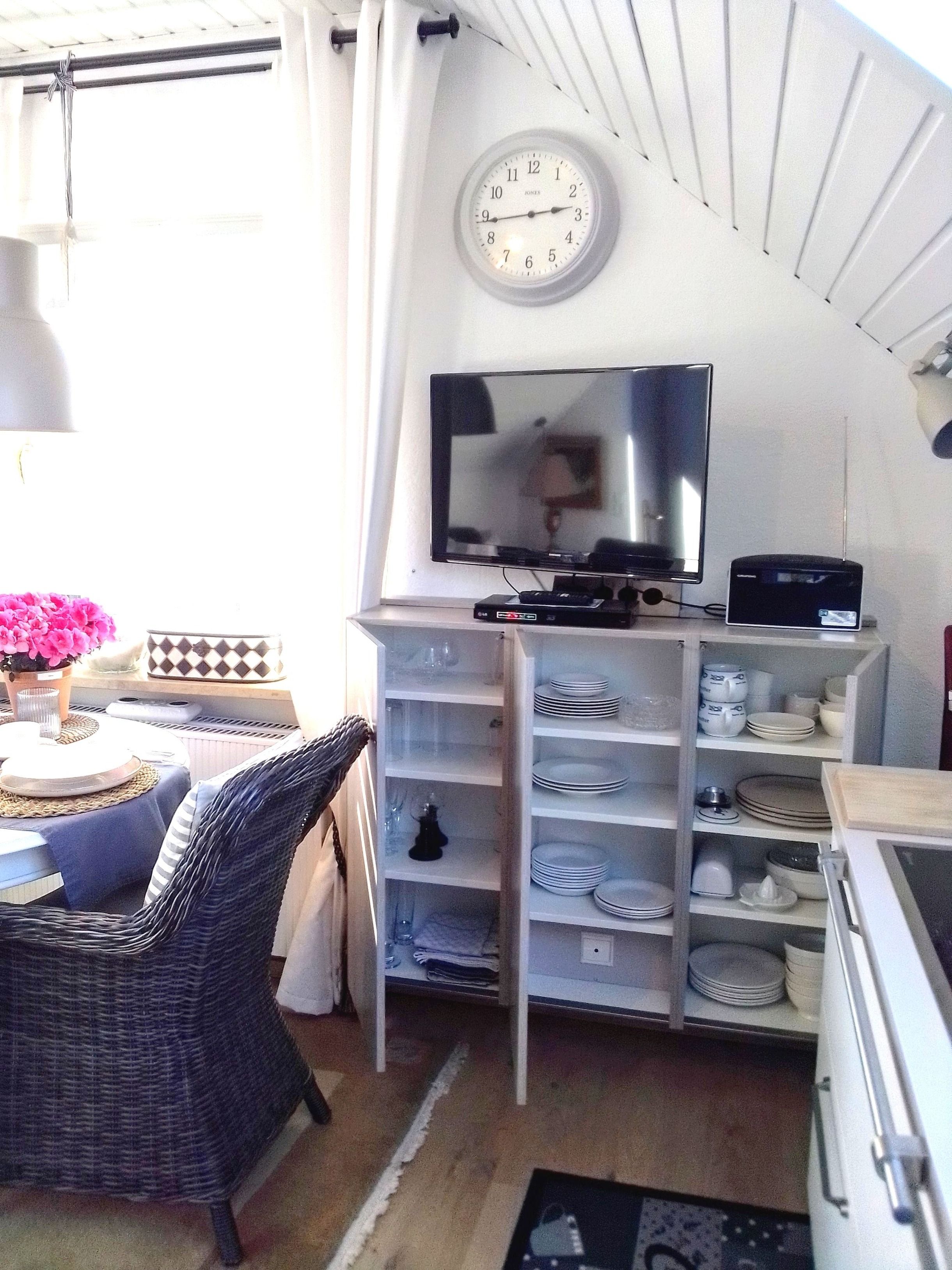 Das separate Schlafzimmer mit elektrischen Lattenrosten, elektrisches Veluxfenster, Rolläden, erhöhten Bettrahmen,2 XL-Bettdecken (im Winter mit kuscheliger Winterbettwäsche von Mont Chalet) und genügend Kissen, von weich bis hart, je nach Bedarf, bieten guten Schlafkomfort. Auch die anderen Räume verfügen über Rollladen oder blickdichte Rollos in den Schrägen. Alles kann stockdunkel sein, wenn Sie mögen. Bademäntel und Fön, sowie für Wolldecken und Wärmeflasche/n im Winter, oder an kühlen Abenden ist ausreichend gesorgt. Die Wohnung ist mit einer Satellitenempfangsanlage, Internetzugang sowie mit zwei Fernsehern und einer Musikanlage ausgestattet. Das sonnige Quarterdeck (Freisitz), ebenfalls Nichtraucherzone, lädt auch noch in den Abendstunden zum ungestörten Grillen ein.