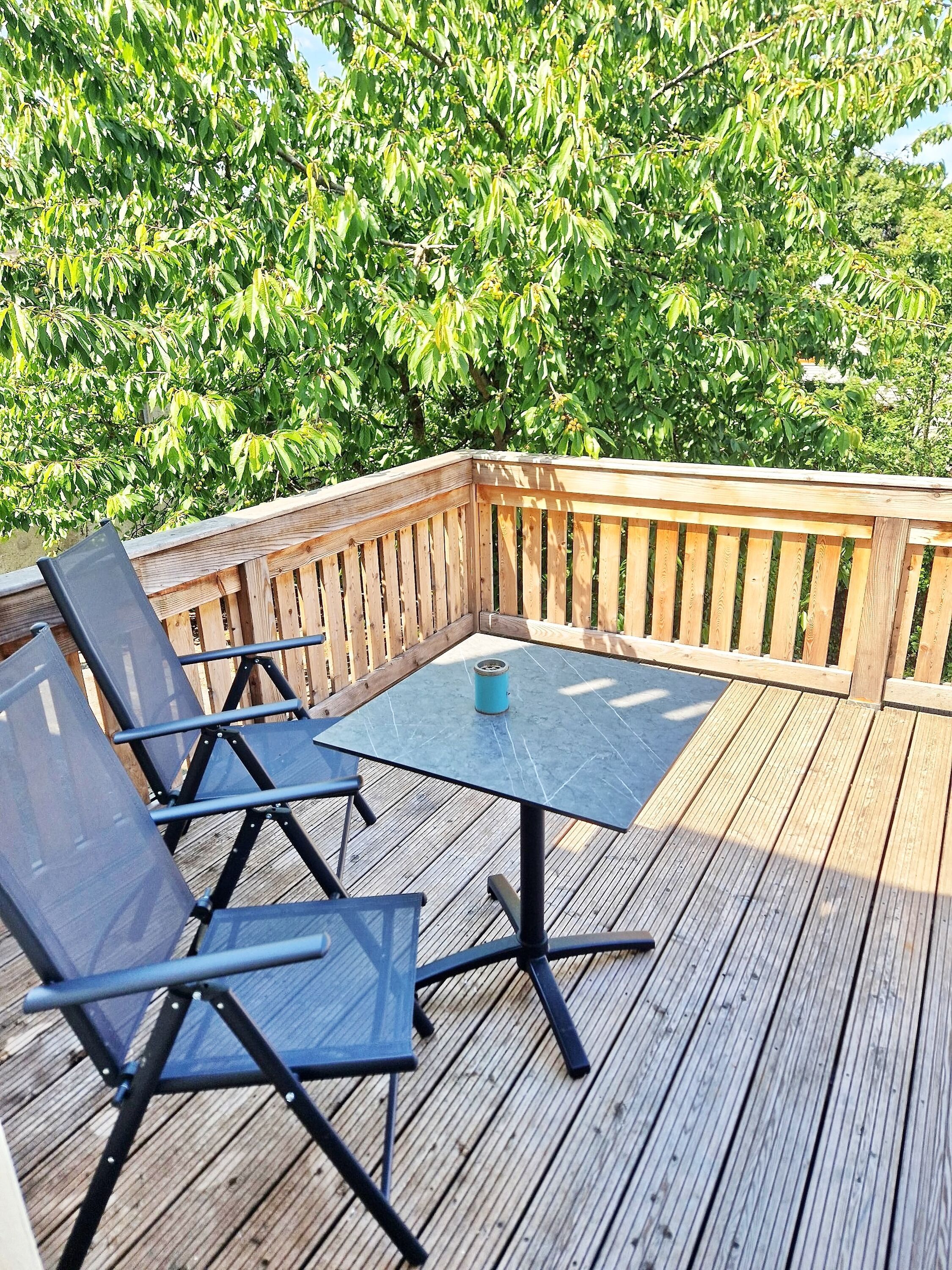 - großer Balkon mit 2 Stühlen und Tisch