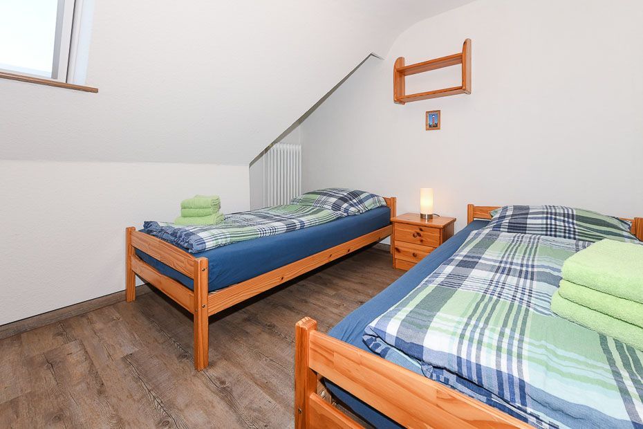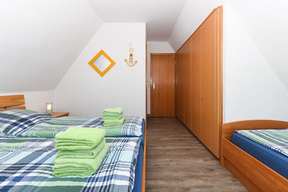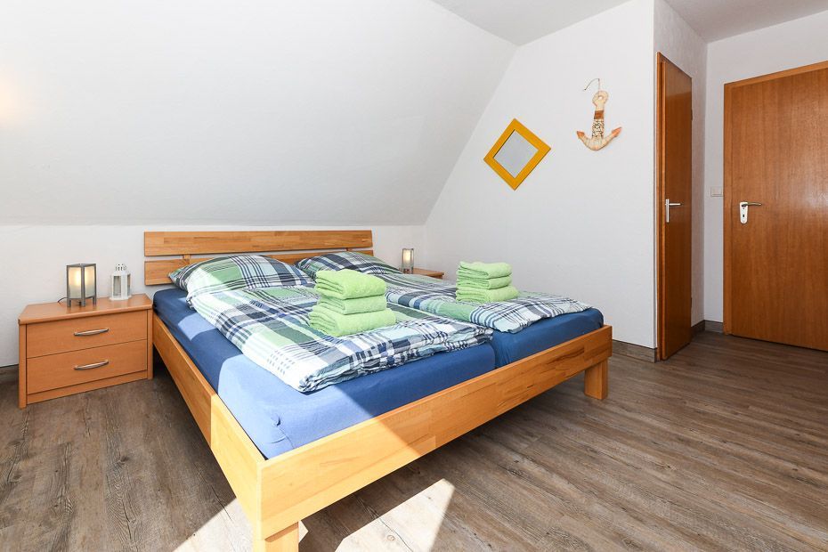 Größe ca. 60 Quadratmeter, Wohnraum mit integrierter Küche, Schlafzimmer, zweites separates Schlafzimmer mit, Waschgelegenheit, Badezimmer mit Dusche und Waschtisch, separates WC, Obergeschoss, Balkon, optimal für 2 bis 5 Personen.