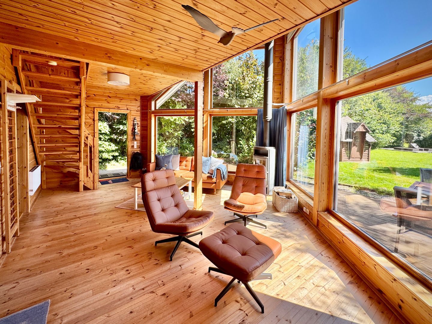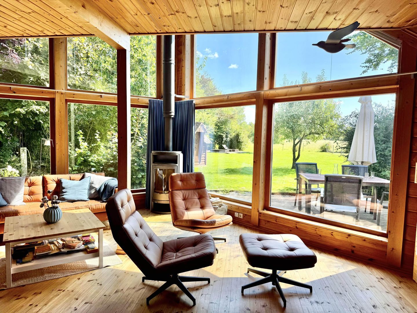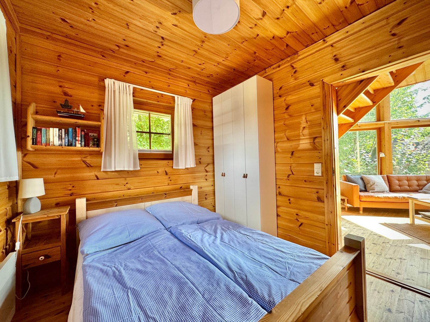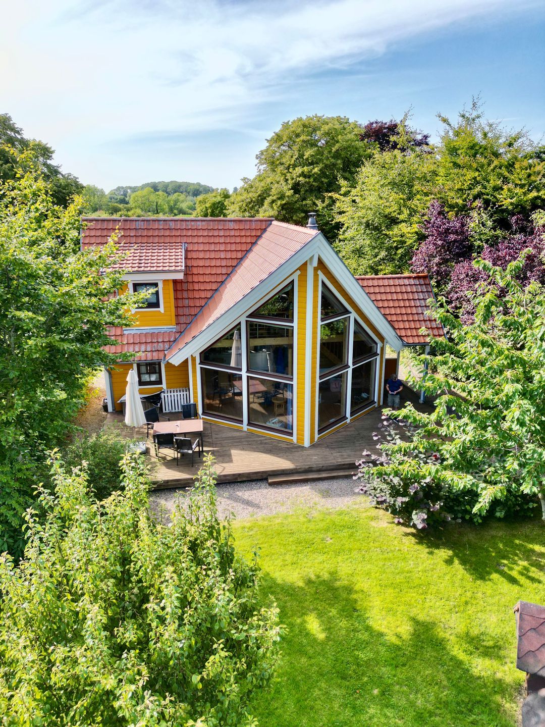 Ferienhaus in idyllischer Lage. Nur 300m vom Ostseestrand entfernt. Das voll ausgestattete finnische Holzhaus ist der ideale Ort für einen entspannten, naturnahen Urlaub an der Ostsee. Herz des gemütliches Hauses ist der große, lichtdurchflutete Wohnbereich im Erdgeschoss mit Kamin, einem Essplatz und einer umfangreich ausgestatteter Küche mit Geschirrspüler, Mikrowelle, Kaffeemaschine und vielem mehr. Im Erdgeschoss liegt auch das großzügige Bad mit Sauna, Whirl-Badewanne und Dusche und ein Schlafzimmer mit Doppelbett (1,40m x 2,00m). Auf der offenen Galerie befindet sich das zweite Schlafzimmer mit Doppelbett (1,80m x 2,00m) und ein Arbeitsplatz mit Blick auf den Garten und in Richtung Ostsee und Leuchtturm Falshöft.