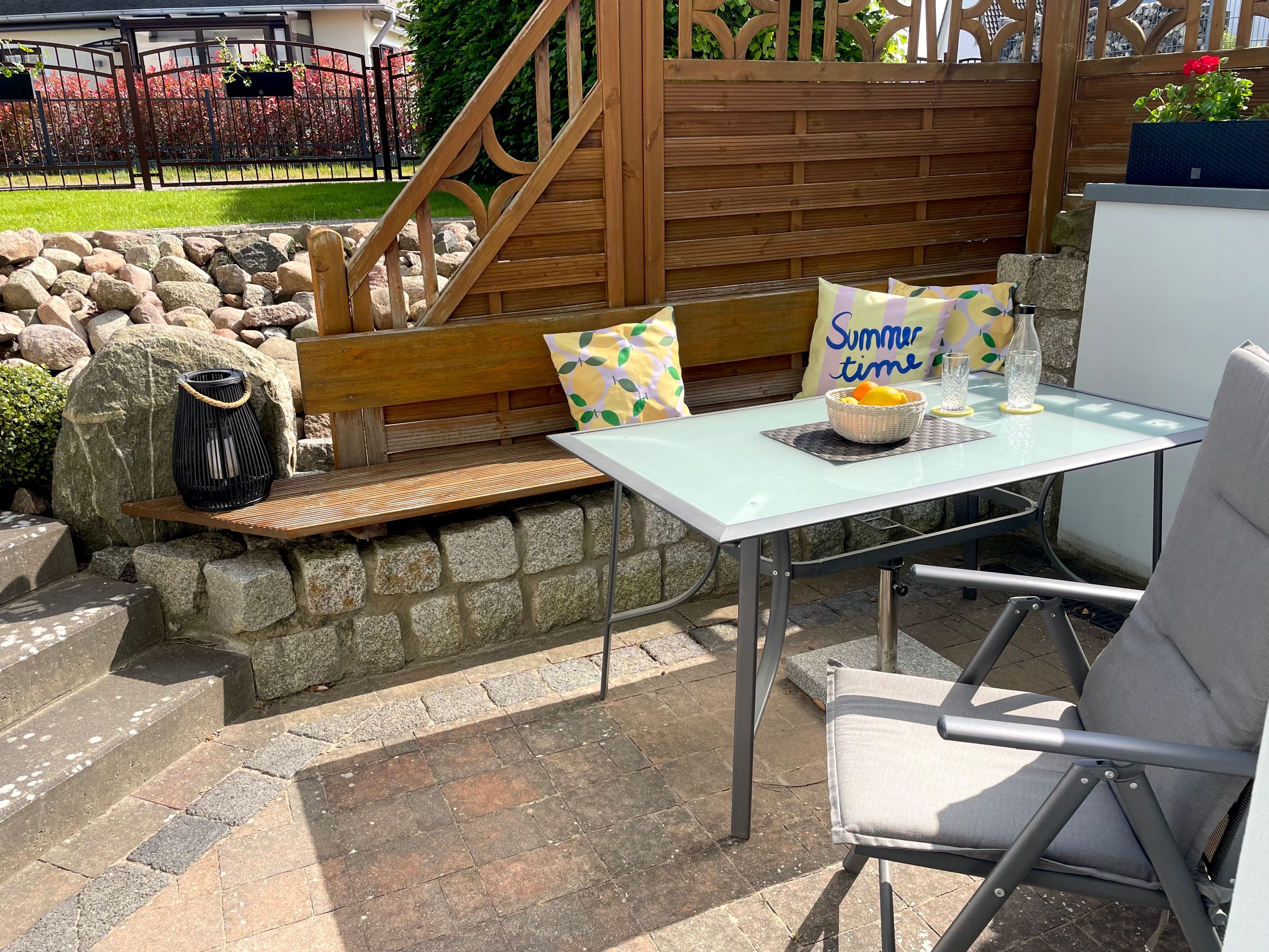 Unsere Unterkünfte sind ein guter Ausgangspunkt für tolle Tage am Meer und für Aktivitäten auf der Sonneninsel Usedom. Stellen Sie Ihren Pkw nach Anreise auf dem eigens für Sie reservierten und umzäunten Parkplatz ab. Von dort aus gelangen Sie über die Terrasse, die mit einem Tisch und Gartenmöbeln für Sie zur Verfügung stehen, in die Ferienwohnung Ankerplatz. Zudem schließt sich eine Gartenfläche an die Ferienwohnung an mit einem abschließbaren Fahrradhaus. Dort finden Sie auch einen Grill, den Sie gerne im Freien verwenden können. Für die Ferienwohnung „MeerZeit“ gibt es ebenfalls einen Parkplatz auf dem Grundstück. Das gesamte Grundstück ist eingezäunt. In dem Haus befindet sich eine zusätzliche Mietwohnung. Wir als Gastgeber heißen Sie recht herzlich willkommen in unserer Ferienwohnung Ankerplatz.