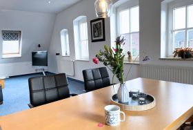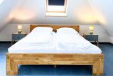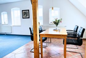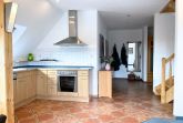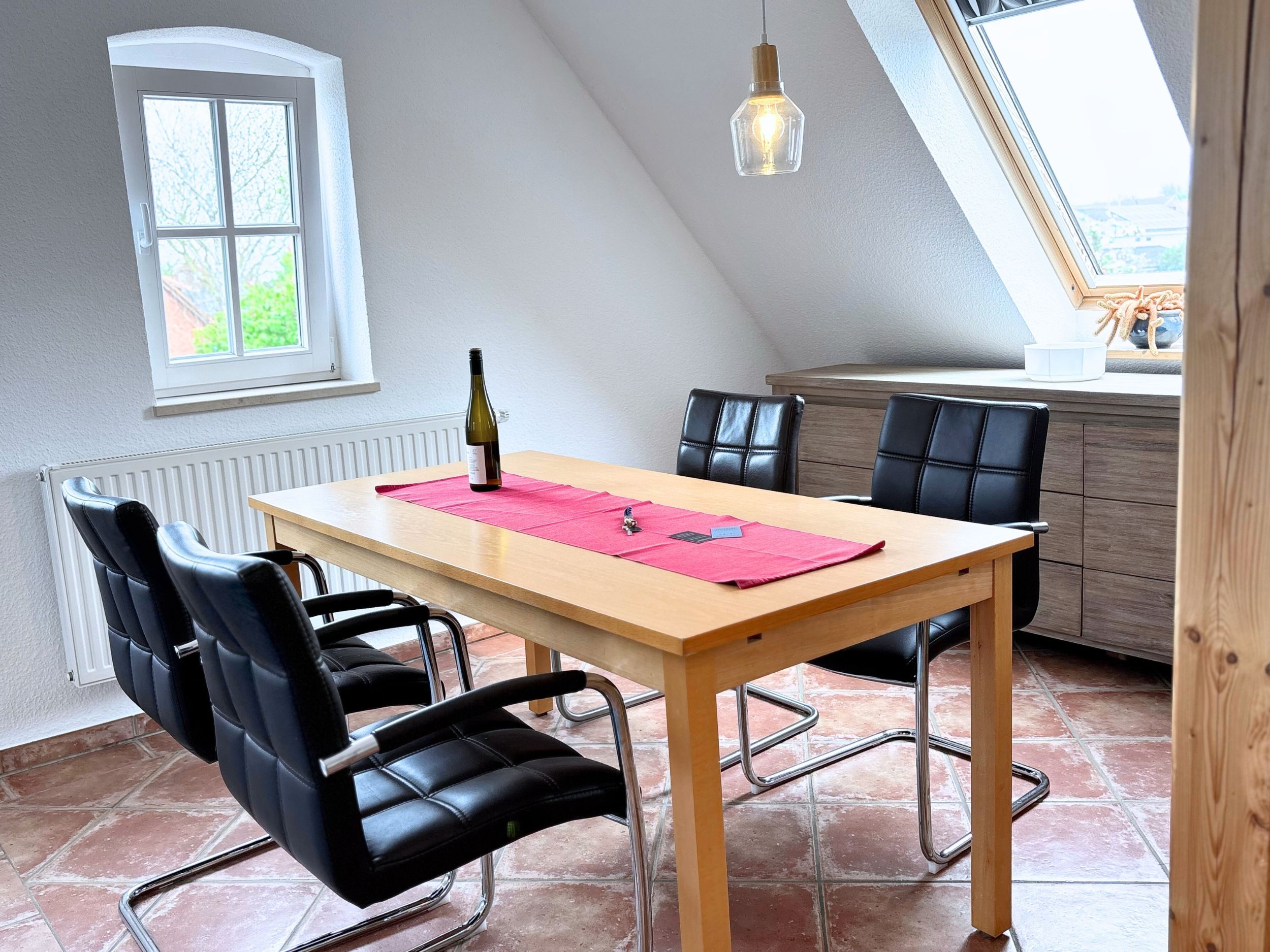 Das Loft unsere Luise von der Wiese befindet sich im Obergeschoss der Hofscheune. Die Ferienwohnung ist für bis zu 3 Personen ausgelegt. Besonders einladend ist hier die großzügige Wohnküche ein heller Raum mit Sofalandschaft. Es gibt ein Schlafzimmer (Einzelbett und Doppelbett), das über eine kleine Treppe erreichbar sind. Das Badezimmer mit Dusche und Badewanne hat ein Fenster zur Nordseite.