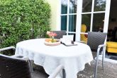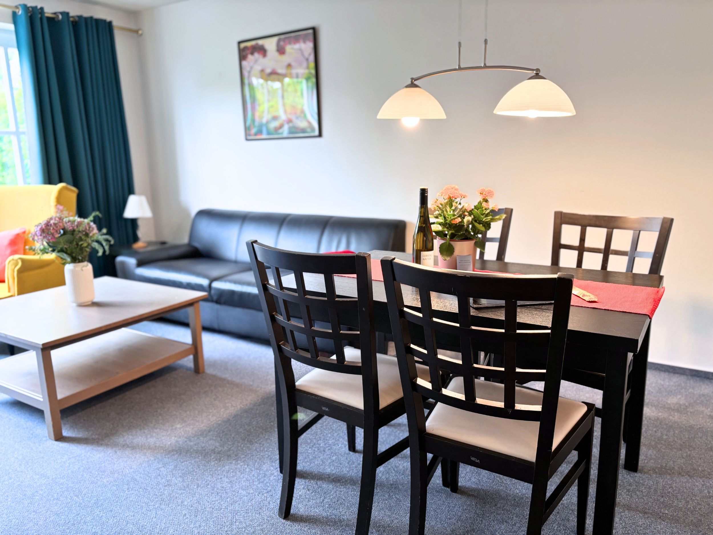 Sybille Sonnenbrille ist unsere gemütliche Wohnung im linken unteren Teil des Hauses am Teich. Die Ferienwohnung bietet Platz für bis zu vier Personen, hat zwei Schlafzimmer und eine charmante Wohnküche. Auch eine kleine Terrasse gehört zu Sybille Sonnenbrille. Sie ist gen Westen gerichtet und besonders einladend an lauen Sommerabenden.