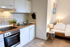 Jutta vom Kutter lädt zu Inselträumen ein. Das 1-Raum-Apartment mit Küchenzeile und Duschbad ist der perfekte Ort für eine Auszeit zu zweit. Jutta vom Kutter befindet sich in unserem schönen Bauernhaus und hat Gartenblick.