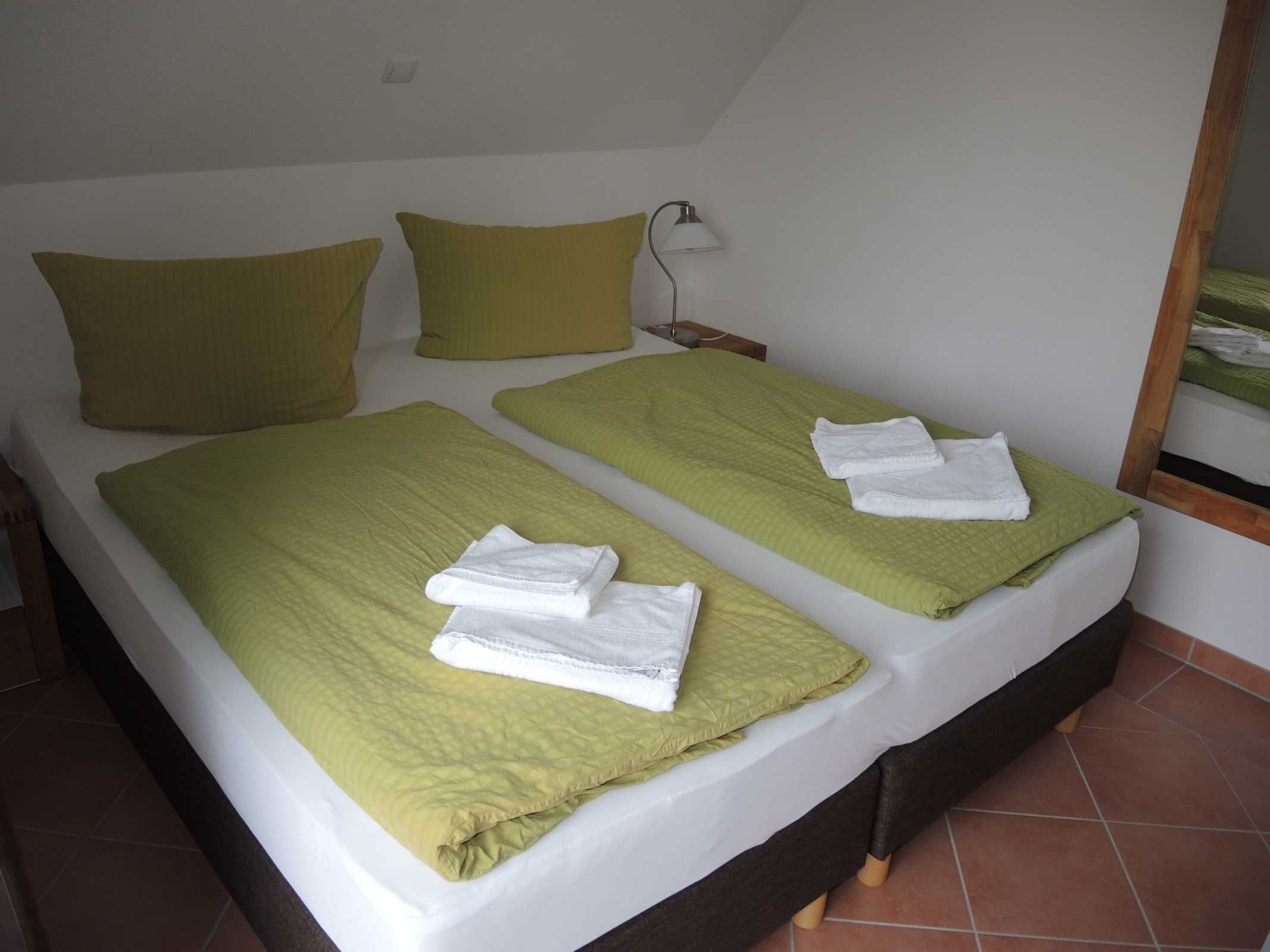 Ebenfalls im ersten Stock befindet sich ein Schlafzimmer mit einem Doppelbett.