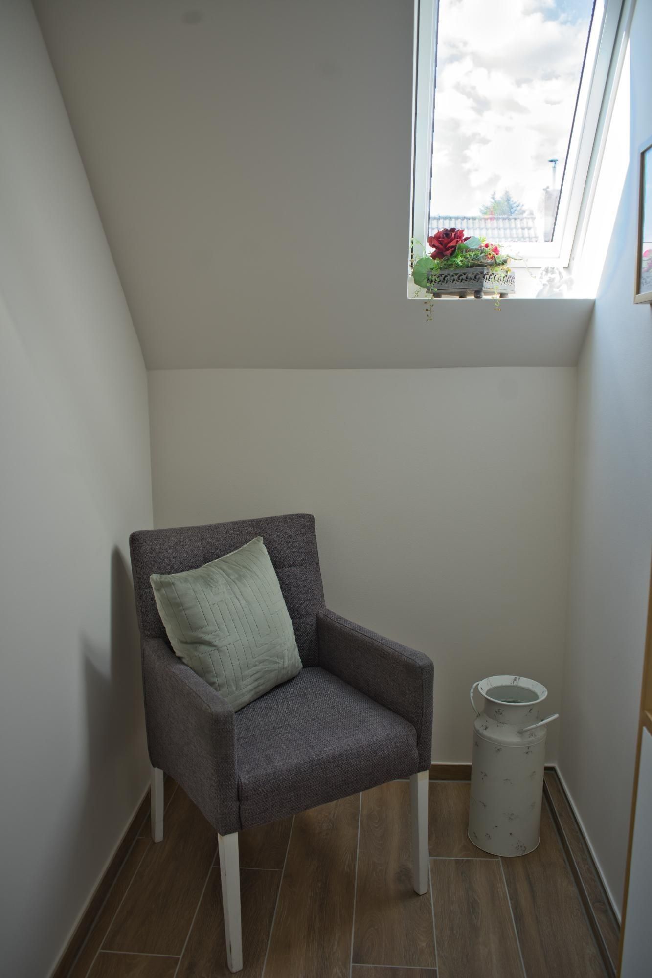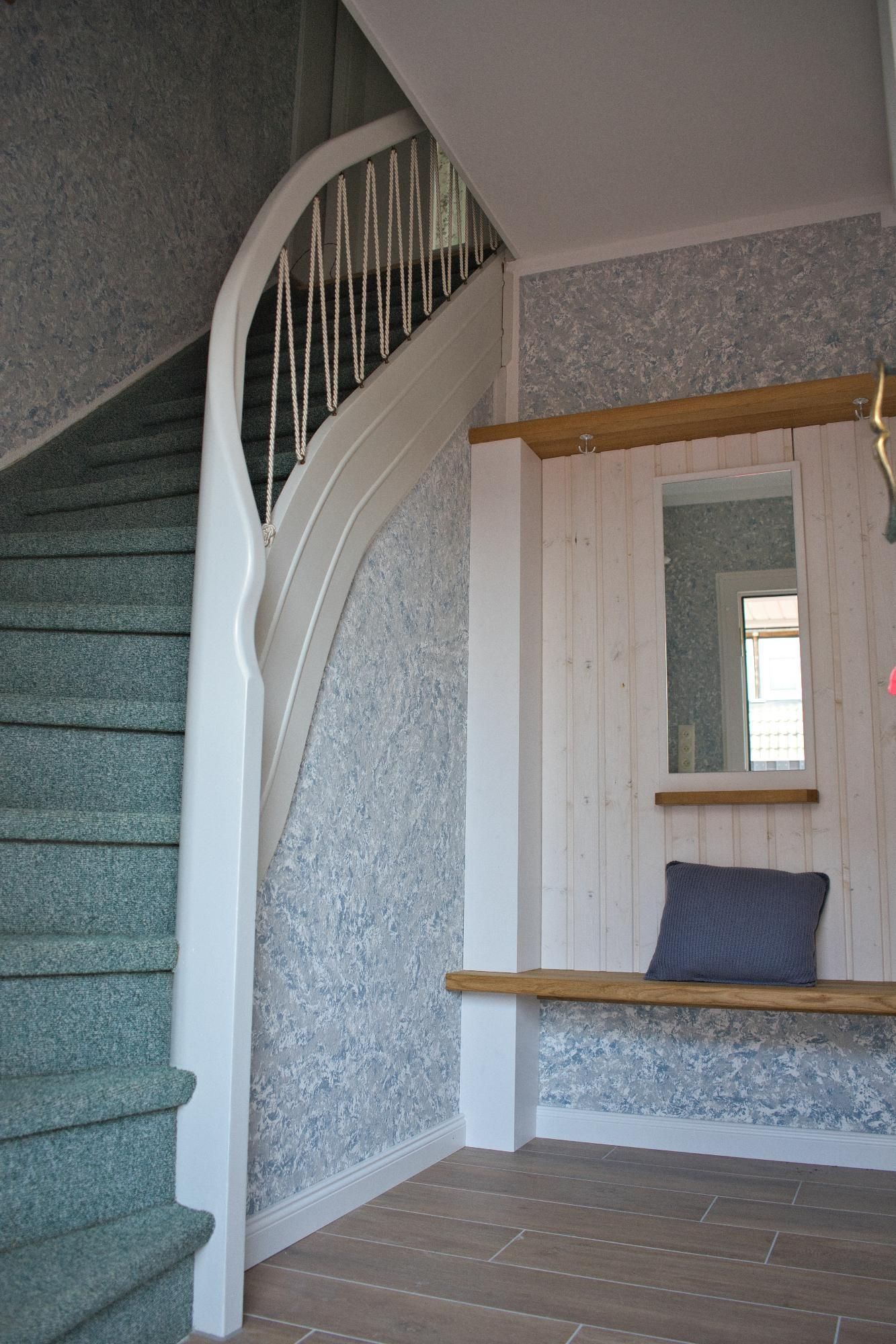 Die freundlich gestaltete Ferienwohnung Janßen bietet mit 70qm Wohnfläche viel Platz für entspannte Urlaubstage und ist durch einen separaten Eingang zugänglich. Bereits im Eingangsbereich befinden sich direkt neben der Treppe eine praktische Ablage für die Schuhe sowie eine Garderobe.