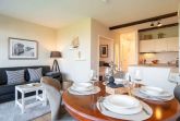 Der großzügige, lichtdurchflutete Wohnbereich lädt zum Verweilen ein und begeistert mit einer offenen, gut integrierten Küchenzeile.
