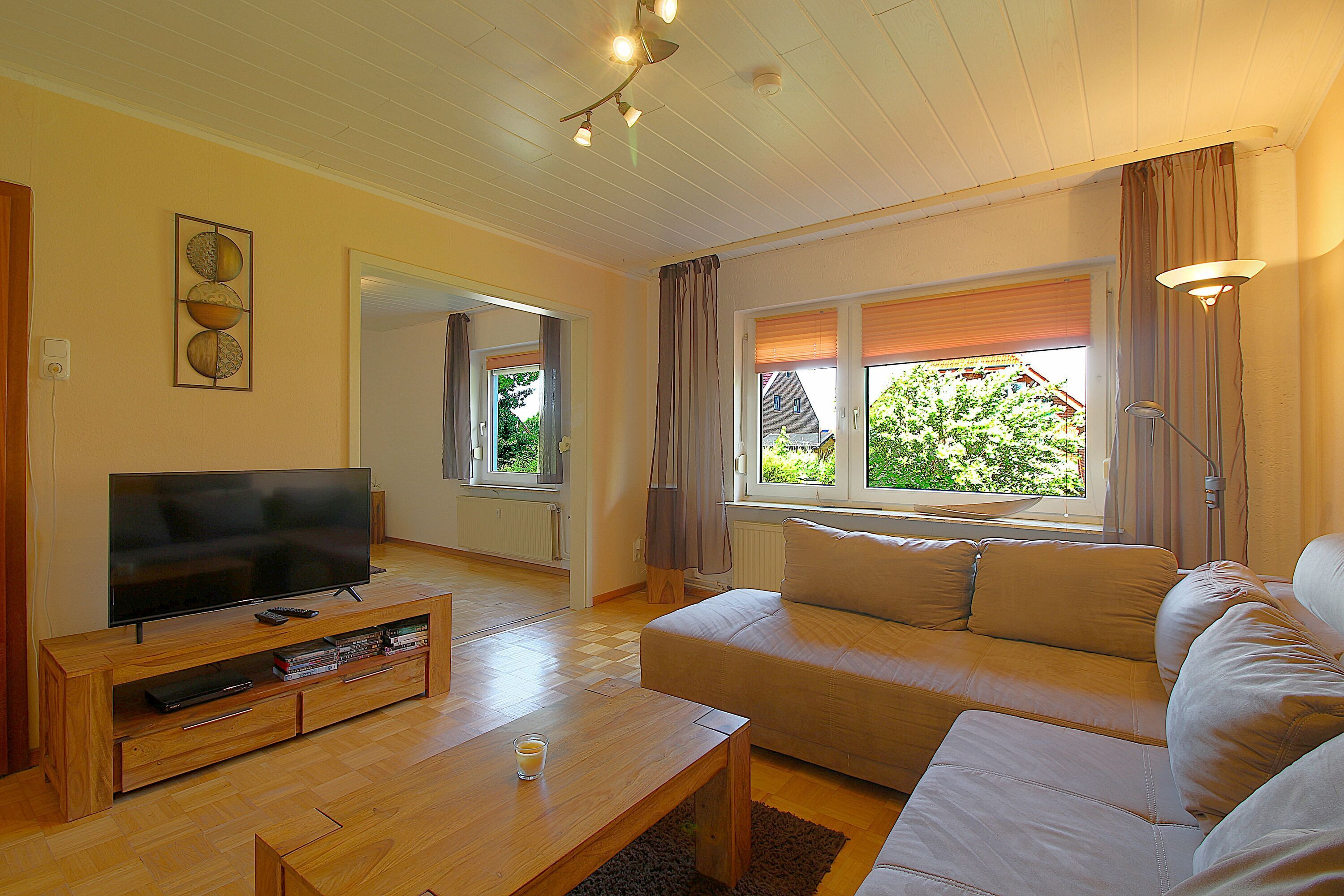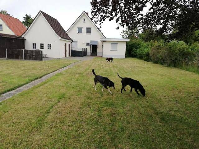 Mit einem großen, eingezäunten Garten zur Alleinnutzung haben Sie viel Platz für Hunde zum Entspannen und Spielen. Die über 90 m² Wohnfläche sind modern und gemütlich gestaltet, mit zwei separaten Schlafzimmern, jeweils mit Doppelbett, und einer zusätzlichen Schlafmöglichkeit auf der Couch im Wohnzimmer. Das große Wohnzimmer mit Parkettboden, Ecksofa und einem zweiten Sofa lädt zum Verweilen ein.