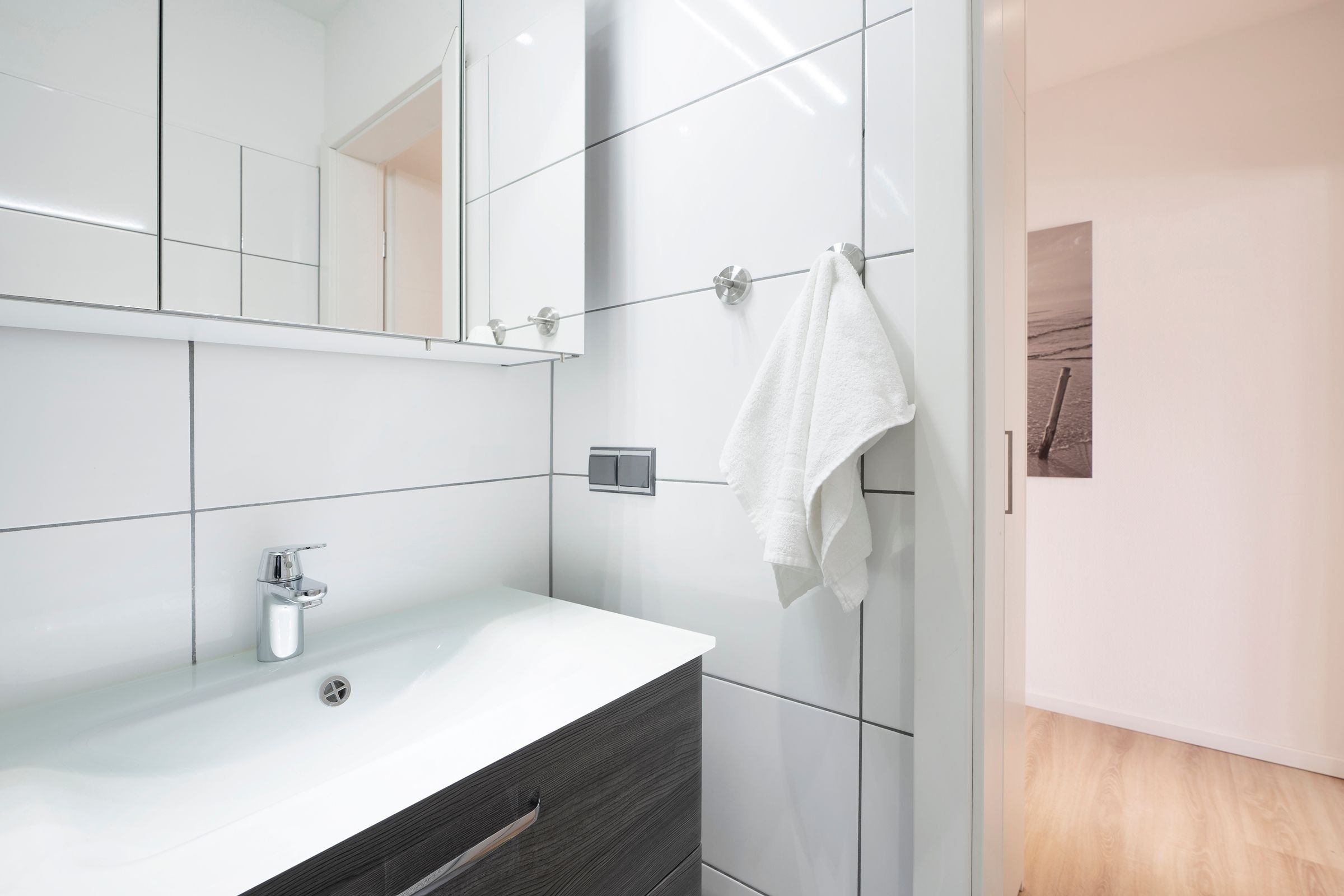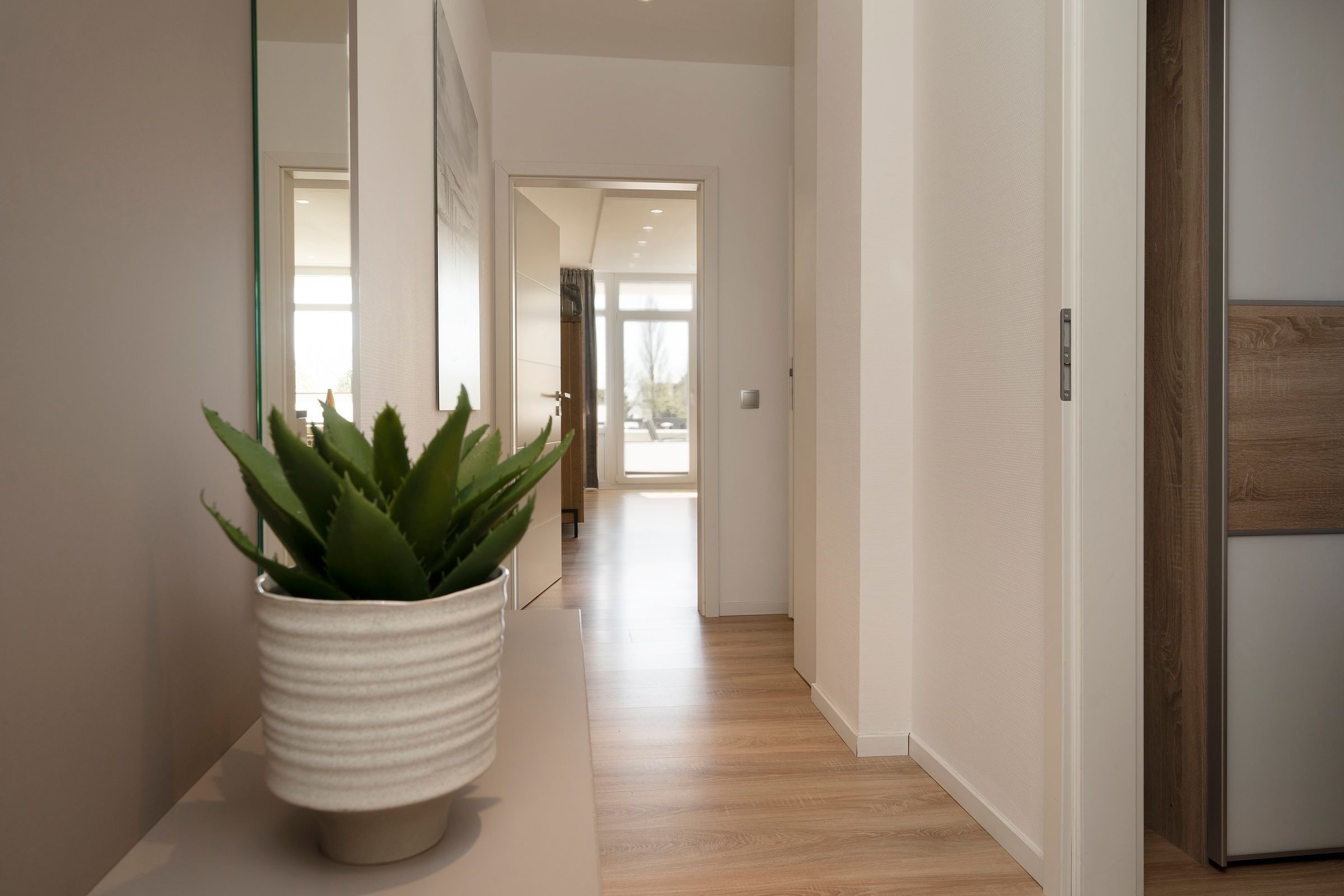 Zeitgemäß, gemütlich, maritim und frisch - Lifestyle pur! Die Inneneinrichtung dieser Ferienwohnung wurde mit viel Liebe zum Detail und Stilsicherheit aufeinander abgestimmt. Im Flur verstauen Sie mit Leichtigkeit Ihre Jacken an der großzügigen Garderobe und können vor dem Ausgehen noch einen Blick in den Spiegel werfen.