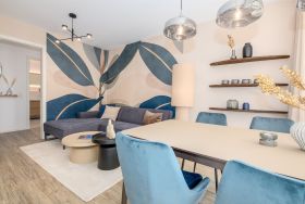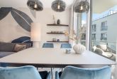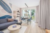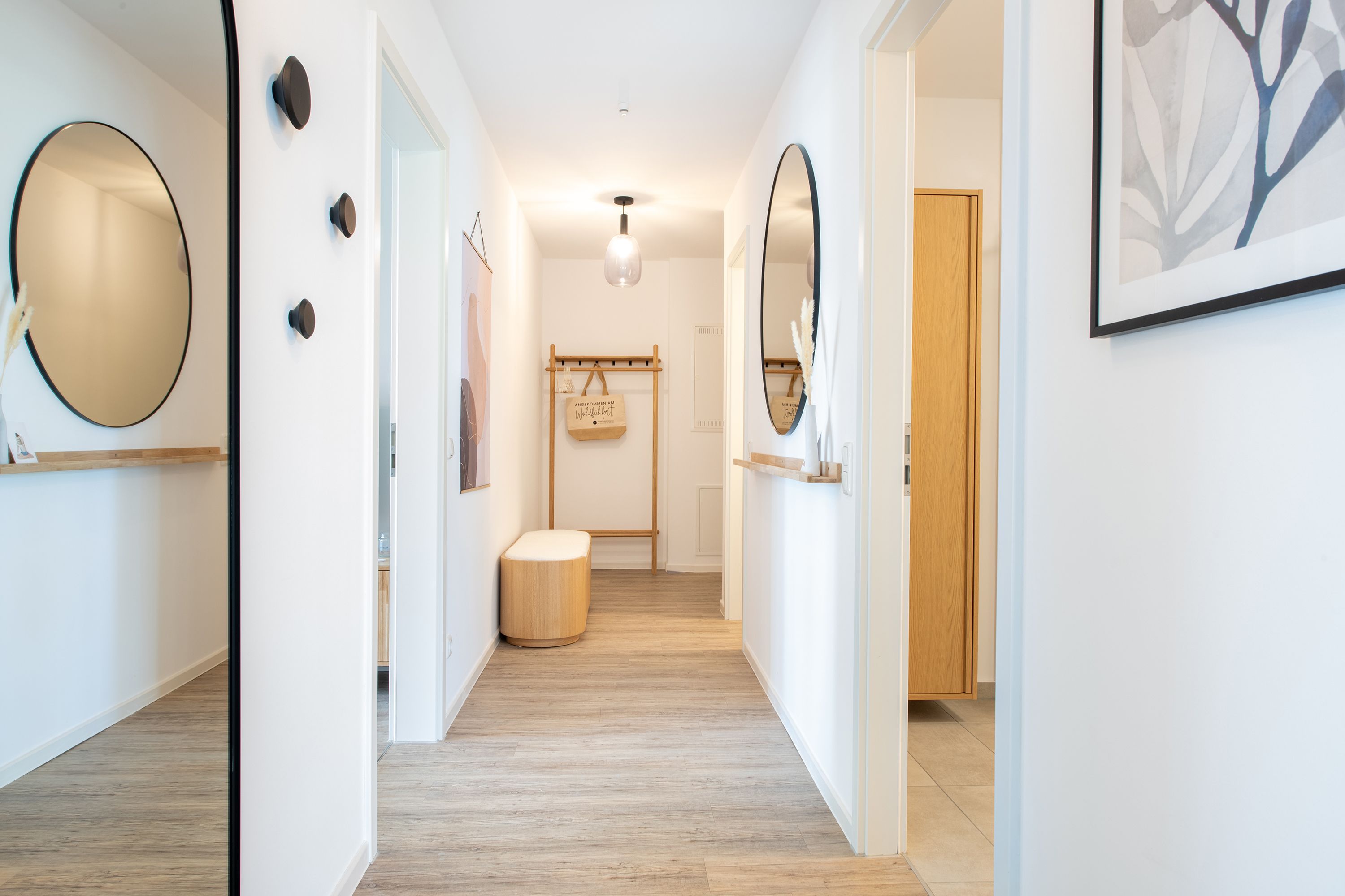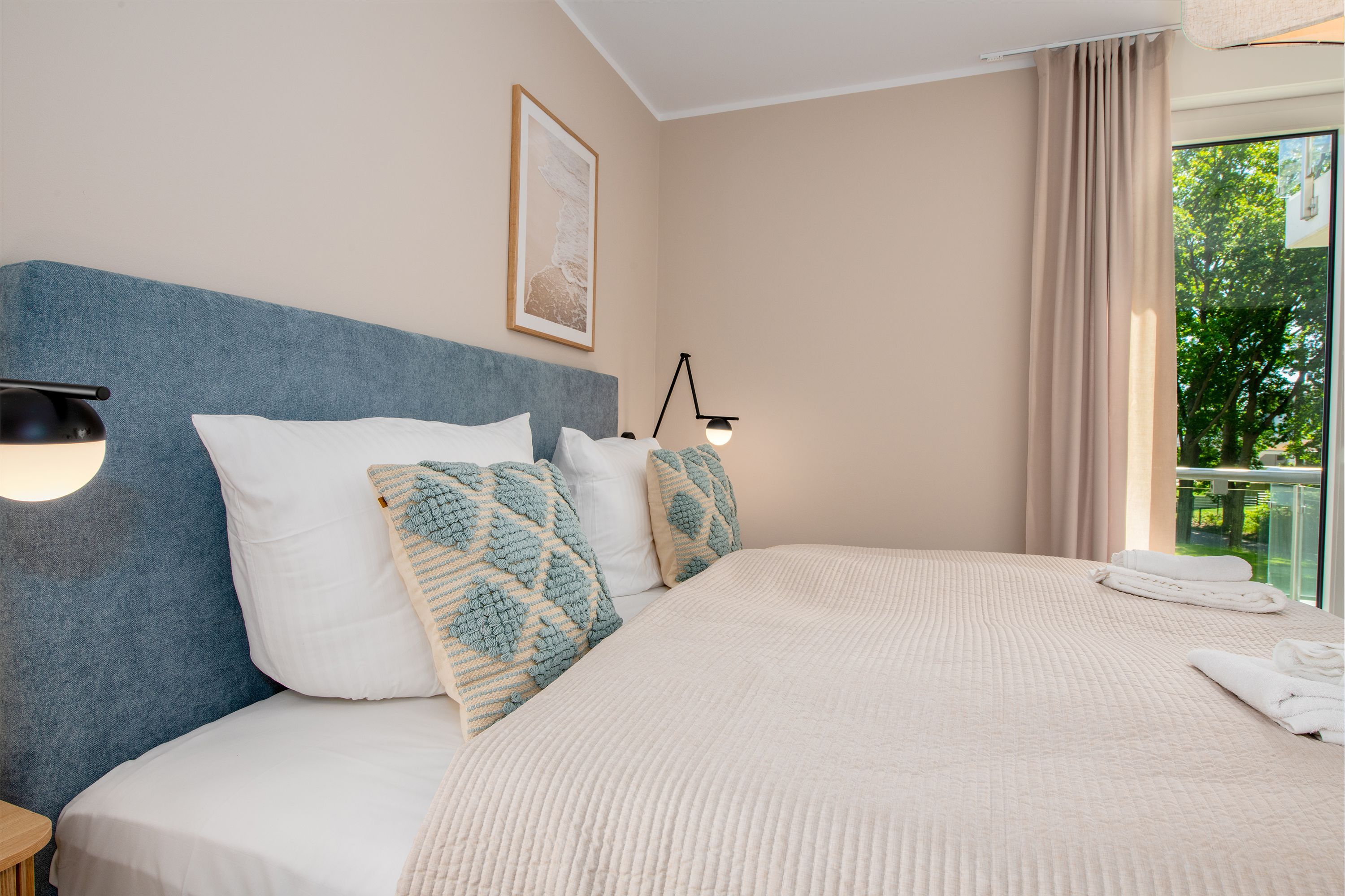 Erleben Sie Ihre persönliche Stilvolle Auszeit eine hochwertig eingerichtete Ferienwohnung im 1. Obergeschoss, liebevoll gestaltet von der Usedomer Inneneinrichterin Julia de la Motte mit Gespür für Stil, Qualität und Gemütlichkeit. Die Wohnung bietet auf drei Zimmern alles, was es für entspannte Urlaubstage braucht: ein offener Wohnbereich mit gemütlichem Sofa und Smart-TV, eine voll ausgestattete Küche, zwei behagliche Schlafzimmer mit komfortablen Doppelbetten in Hotelqualität. Beide Schlafzimmer sind mit einem Smart-TV ausgestattet - ein Doppelbett ist 2,20 m lang. In einem Schlafzimmer befindet sich zusätzlich ein Schreibtisch mit Glasfaser-Internet-Zugang. Zwei moderne Bäder ergänzen das Wohnkonzept.