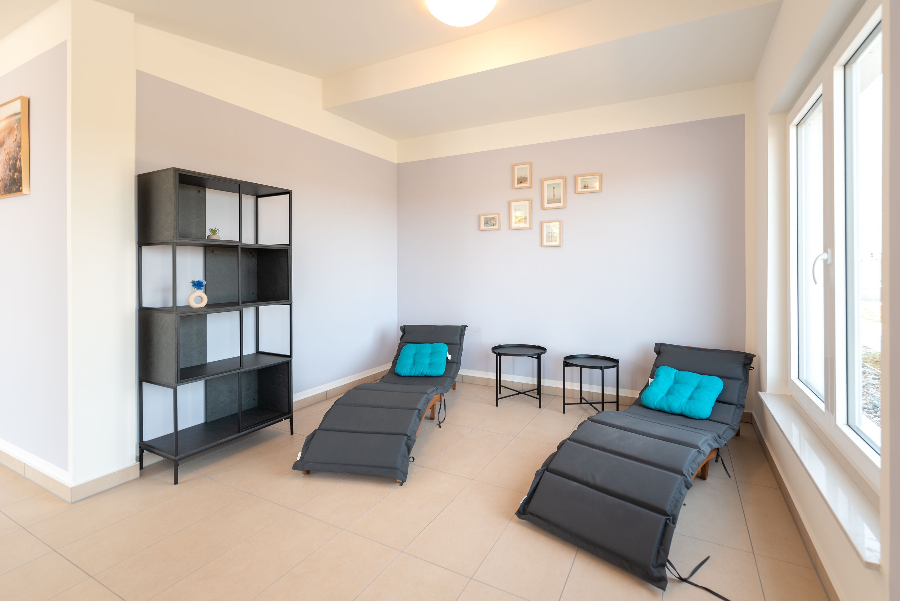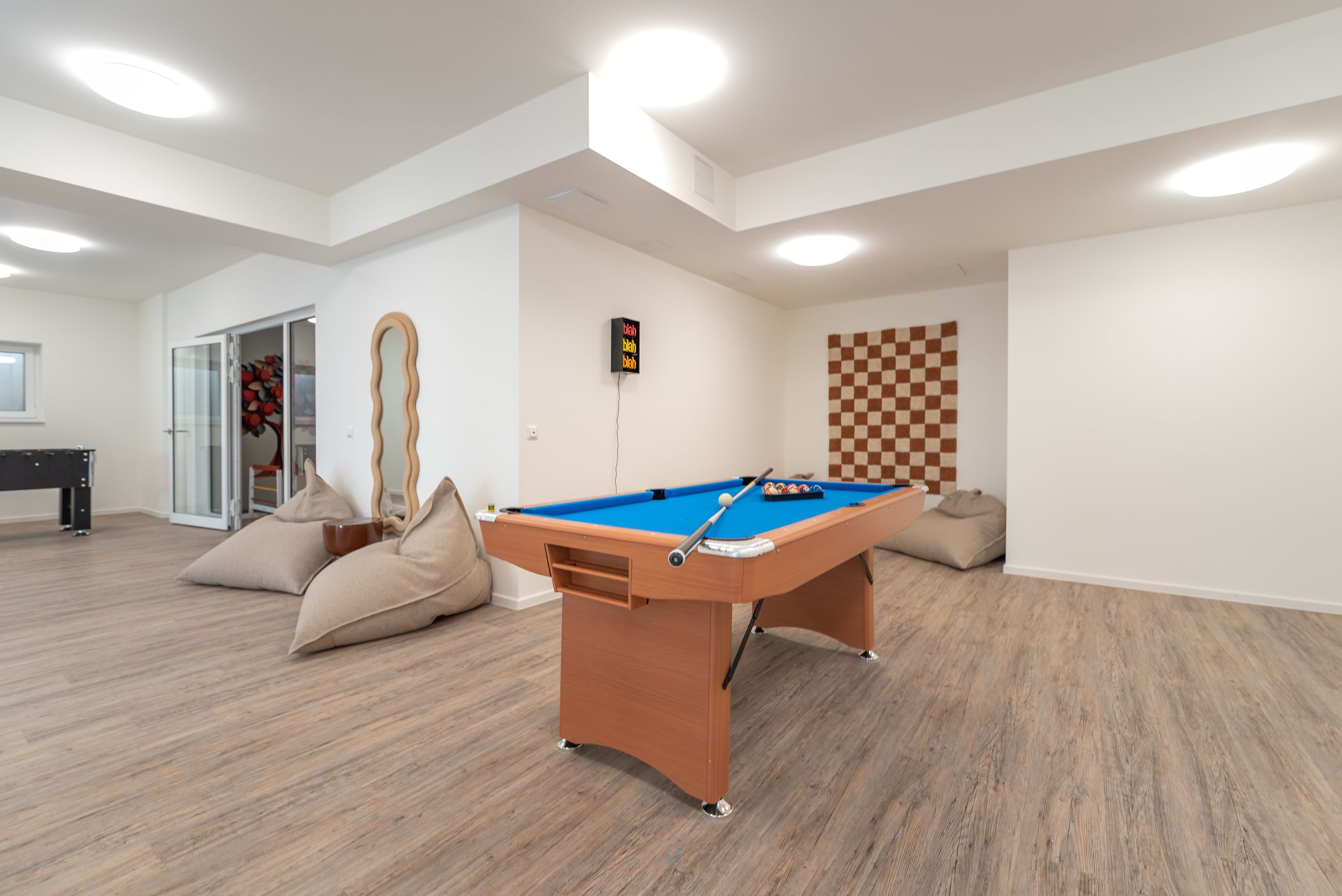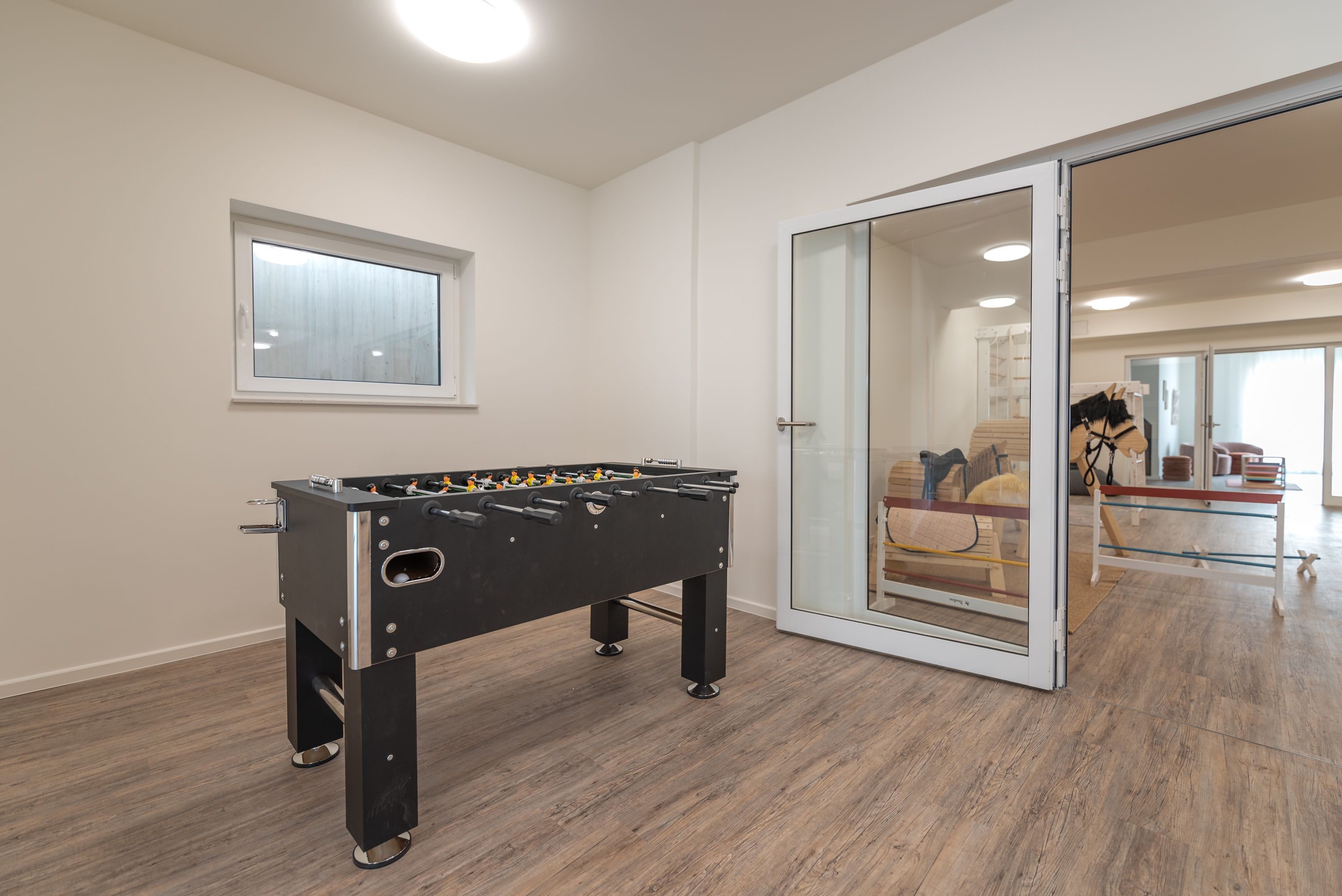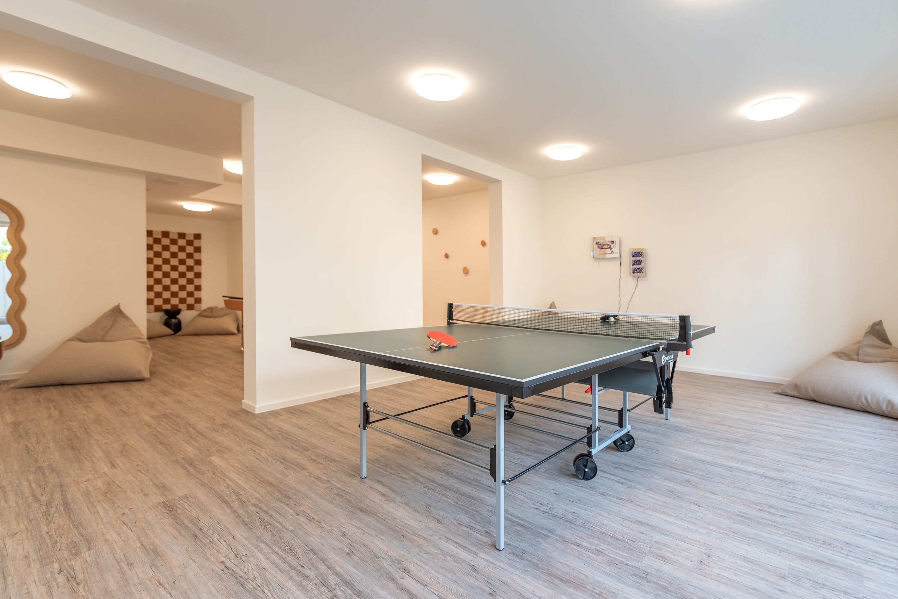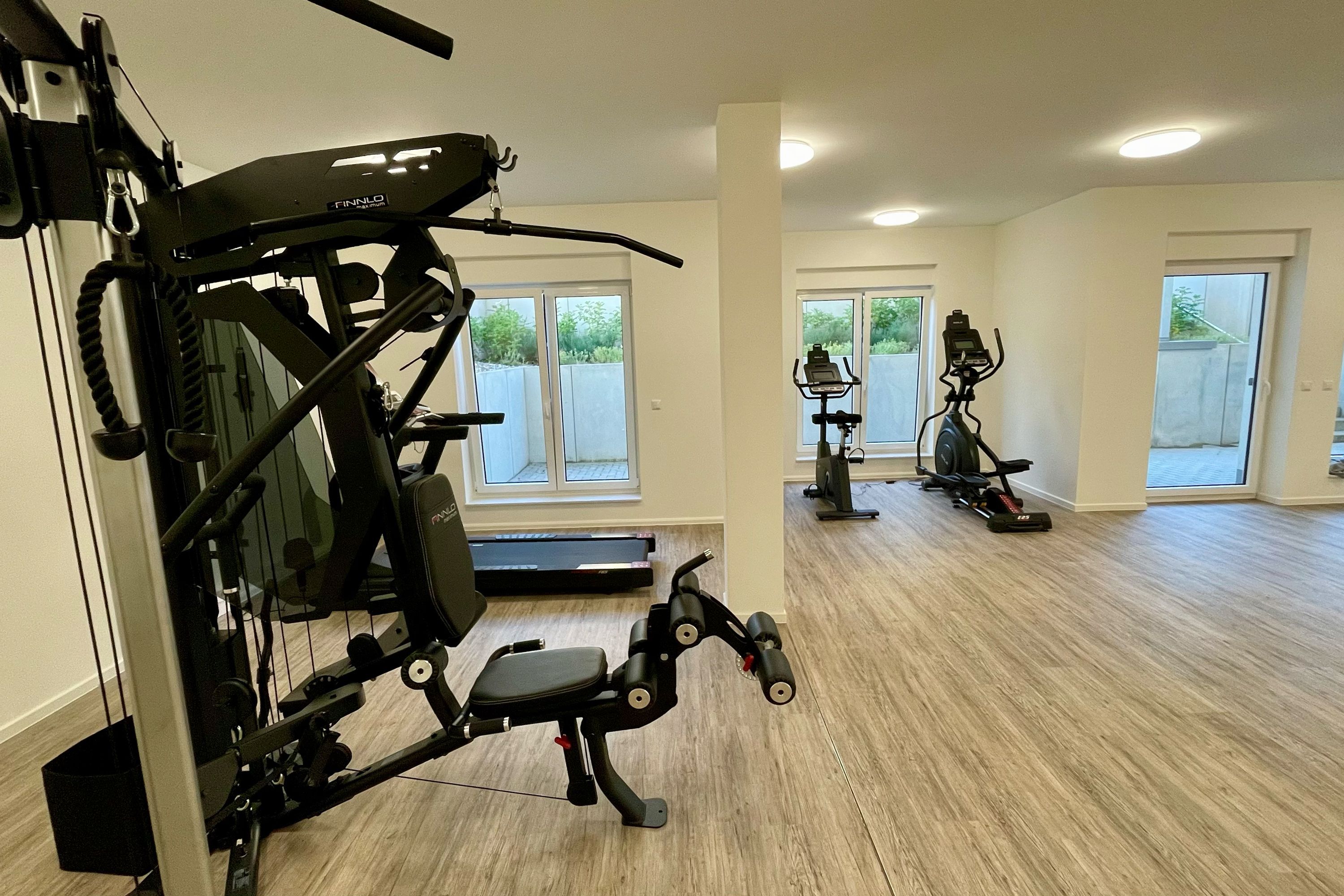 Im Dachgeschoss erwartet Sie der hauseigene Wellnessbereich mit zwei Saunen, einem stilvollen Ruheraum und einer Dachterrasse mit herrlichem Ausblick. Ein großzügiger Fitnessraum mit Kardio- und Kraftgeräten sowie Freihanteln steht ebenfalls im Untergeschoss zur Verfügung. Für wetterunabhängige Unterhaltung für Groß und Klein sorgt der sehr große Gemeinschaftsbereich im Keller mit Billard, Kicker, Tischtennis und einer Kinderspielraum alles kostenfrei nutzbar.
