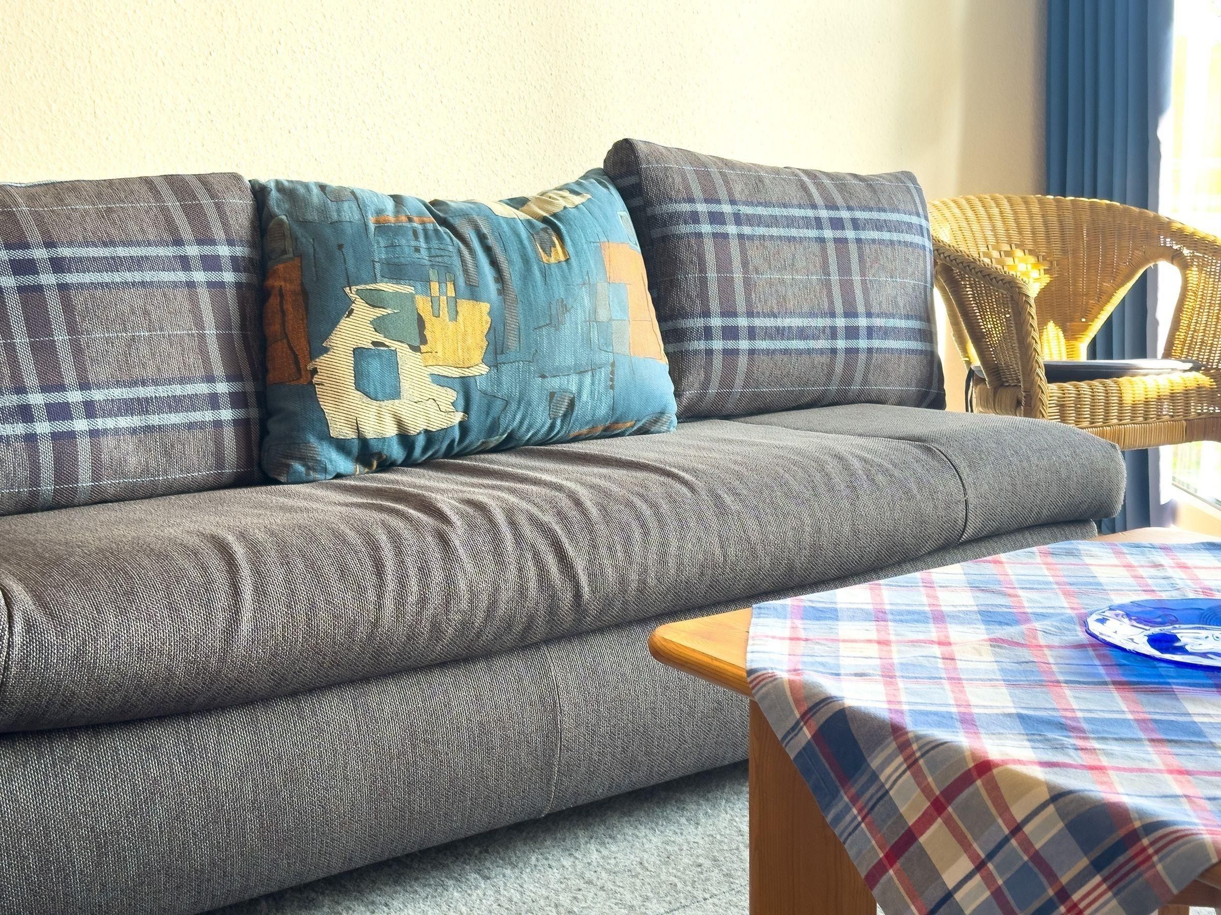 Die Haus Seewind Wohnung 3 in Cuxhaven bietet auf 40 m² eine einladende und moderne Atmosphäre für bis zu vier Personen. Im ersten Stock, der bequem mit einem Aufzug zu erreichen ist, befindet sich ein helles Wohnzimmer mit Sofaecke und Esstisch. Die offene, gut ausgestattete Küche verfügt über Cerankochfeld, Elektrobackofen, Kühlschrank mit Gefrierfach sowie Küchenutensilien. Ein Schlafzimmer und eine Schlafcouch sorgen für zusätzliche Schlafmöglichkeiten. Das Badezimmer ist mit Dusche und Badewanne ausgestattet. Gemeinschaftlich nutzbar sind Waschmaschine und Trockner. Ein Balkon lädt zum Entspannen ein, während ein privater Parkplatz vor dem Haus für Mobilität sorgt. Die Nichtraucherwohnung ist nur 150 Meter vom Strand entfernt und ideal für Familien oder Paare, die Erholung und Freizeitaktivitäten suchen.