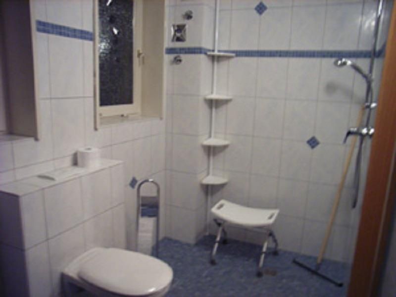 Badezimmer mit Dusche ebenerdig ca. 1,40 x 1,40 m mit Fußboden-Wasserablauf,