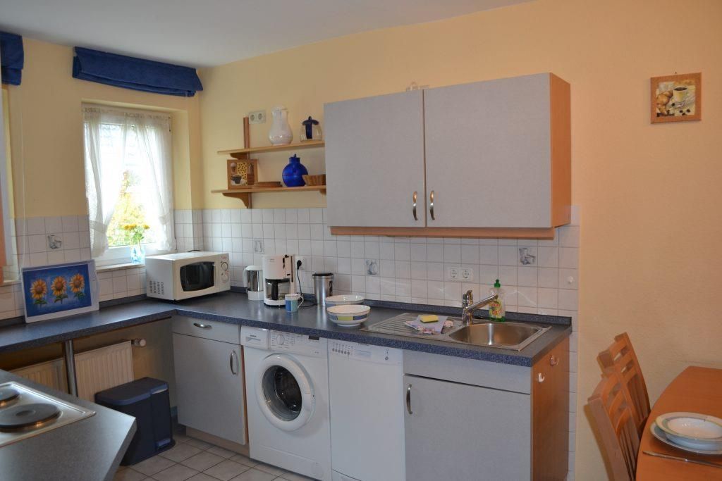 Küche mit Einbau-Küche,Spüle, Herd, Backofen, Kühlschrank,Geschirrspüler & Waschmaschine , Essbereich mit Sitzbank