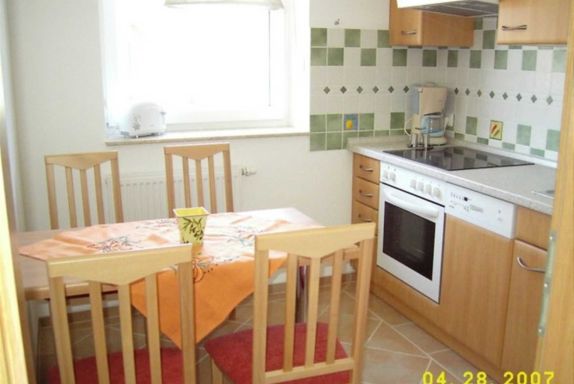 gemütliche Fewo (50m²) in der 1.Etage, WZ+Einbauküche, Fußbodenheizung, Schlafzimmer, Parkett, Terasse, Dusche/WC, Kinderbett und Hochstuhl vorhanden