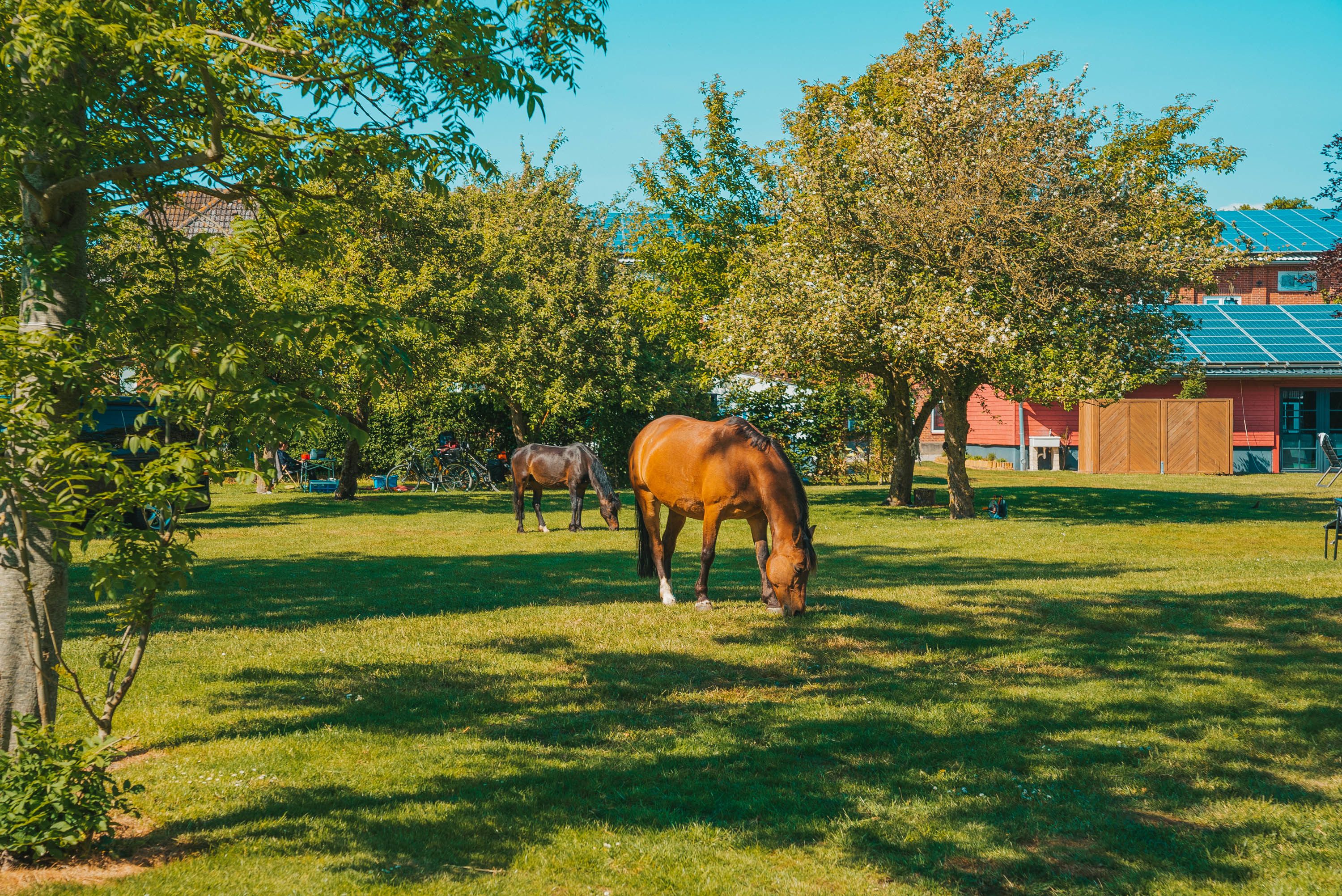 Eine beliebte Attraktion für unsere kleinen Gästen sind die Tiere: Mini-Schweine, Kaninchen, Hühner, Meerschweinchen, Schafe, Ziegen sowie 8 Ponys und Pferde, mit denen i.d.R. zweimal am Tag ausgeritten wird.