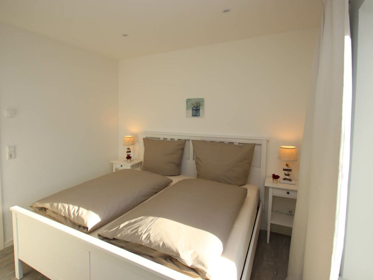 • zwei Schlafzimmer mit Doppelbett und TV; Bettwäsche ist zu buchbar (auch für ein Kinderbett); fest installiertes Fliegengitter im Lüftungsfenster; Selbstversorger benötigen für die durchgehende Matratze ein 200 x 200 großes Spannbettlaken