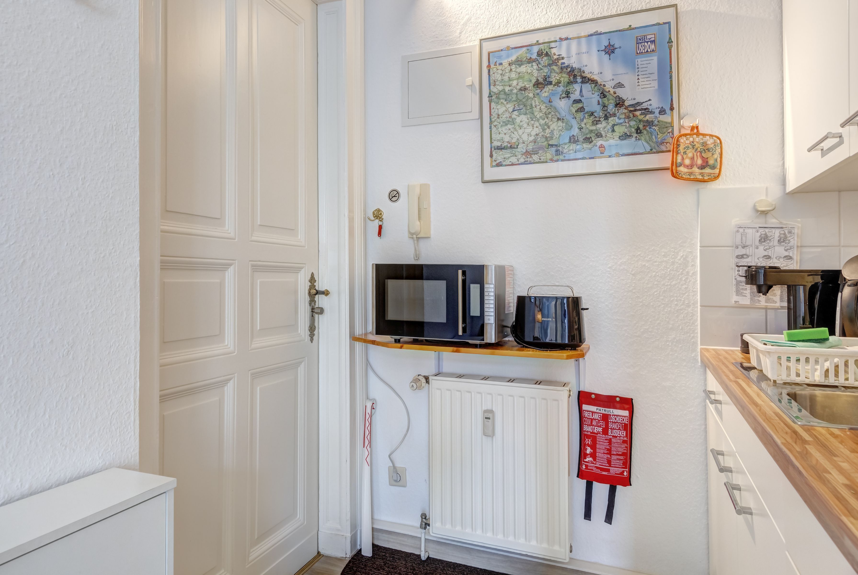 Die Küche ist mit einer Kaffeemaschine, einem Wasserkocher, einem Toaster, einem Cerankochfeld sowie einer Mikrowelle mit Grillfunktion bestens ausgestattet, damit Sie sich während Ihres Aufenthalts rundum wohlfühlen können.