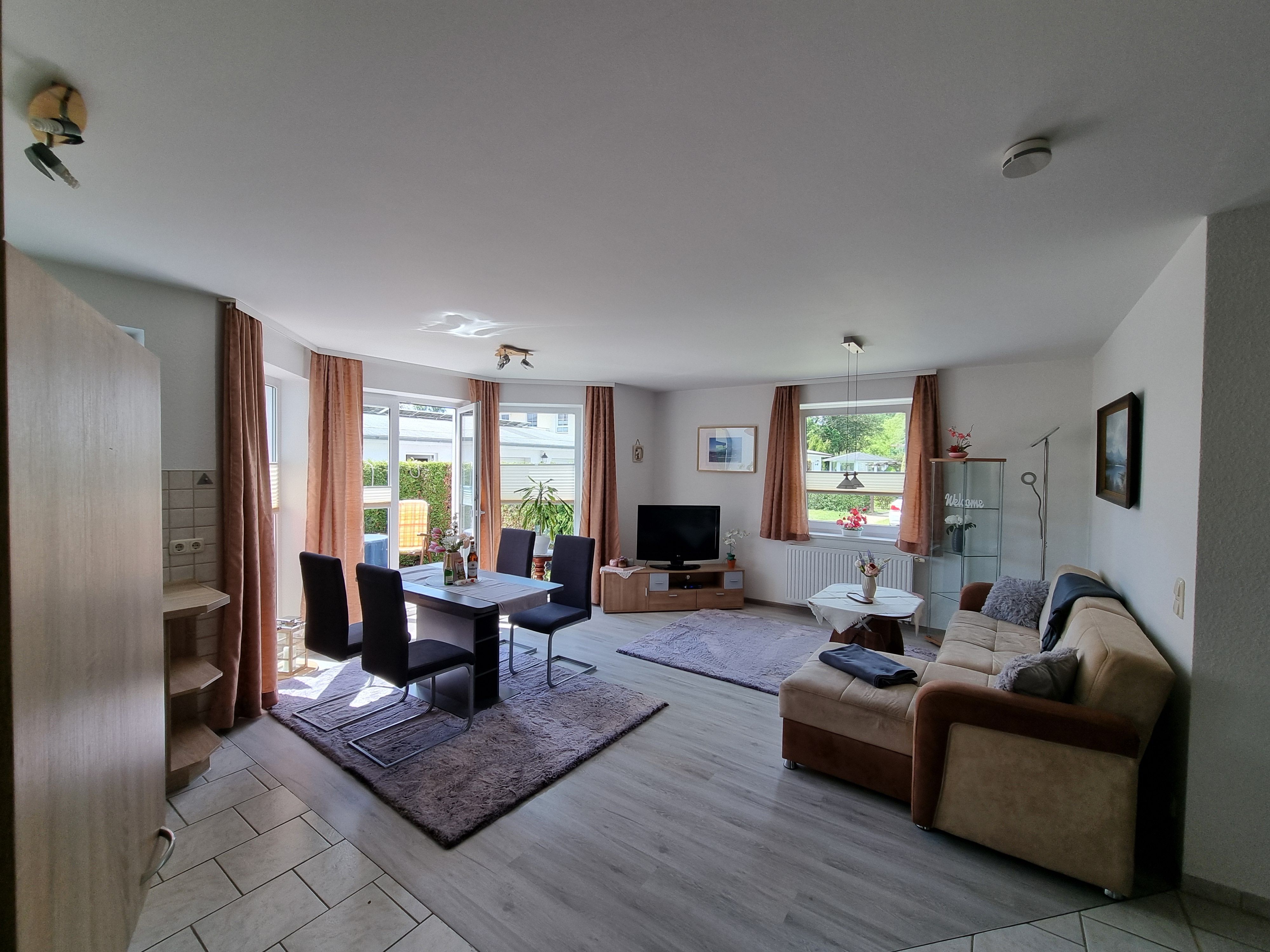 1 Wohnraum (Schlafcouch) mit Küchenzeile & Essbereich