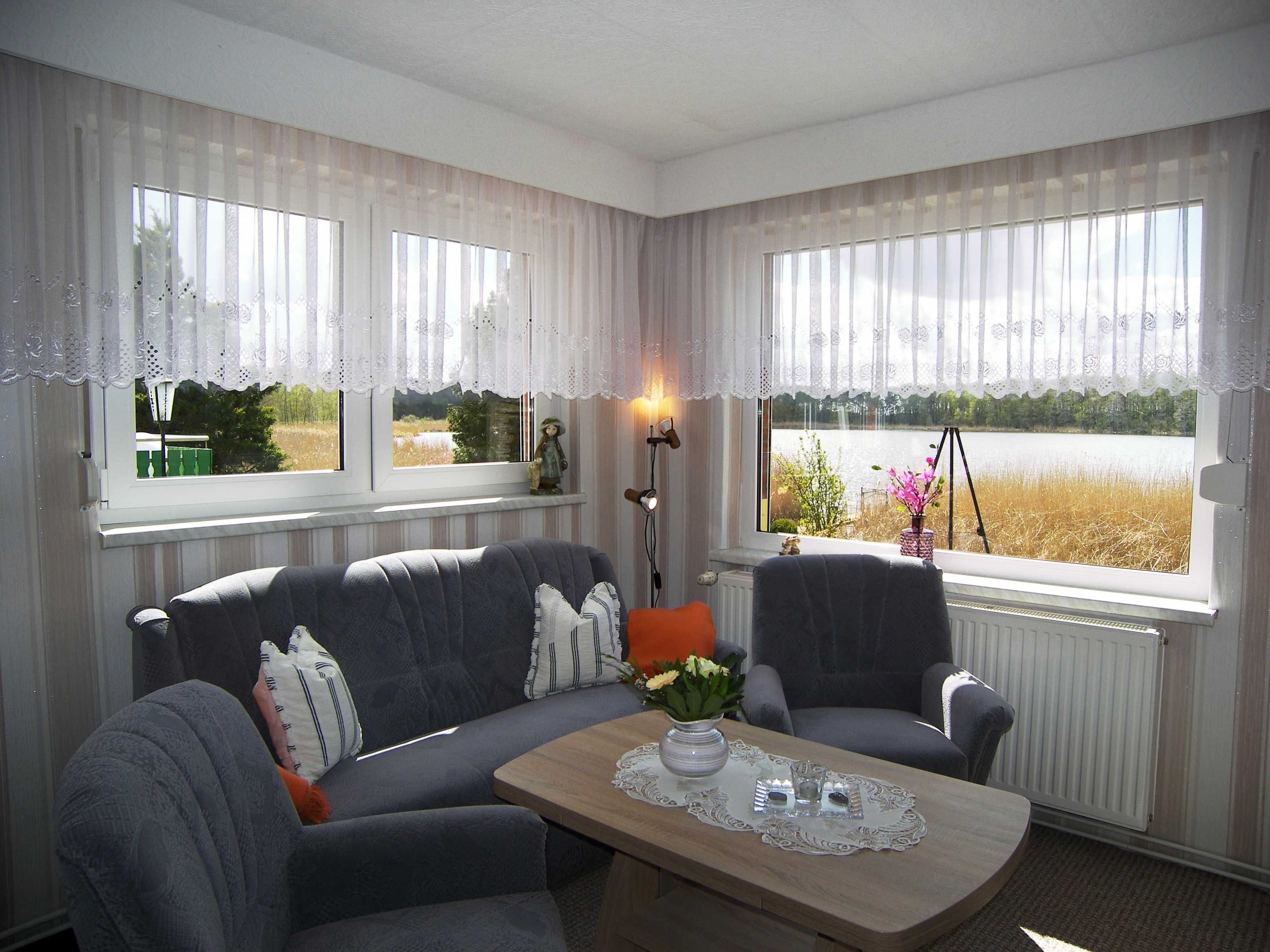 Das gemütlich eingerichtete Ferienhaus verfügt über ein Wohnzimmer mit Couchsitzecke und Panoramafenster mit einem traumhaften Blick auf den angrenzenden Kölpinsee. Des weiteren verfügt der Wohnbereich über eine Wohnwand mit Flachbild-TV und Radio. Die offene Küche ist mit einer Mikrowelle, Kaffeemaschine, Toaster und Kapselkaffeemaschine ausgestattet und integriert sich in den Wohnbereich. Im separaten Schlafzimmer stehen Ihnen ein Doppelbett und ein großer Kleiderschrank zur Verfügung. Das Badezimmer ist mit Dusche und WC ausgestattet. Vor dem Haus, direkt am Eingang, befindet sich eine möblierte Terrasse mit Grillmöglichkeit. Von hier aus kann man ebenfalls den tollen Blick auf den See genießen. Die Bettwäsche ist bereits im Gesamtpreis enthalten. Handtücher sind bitte selbst mitzubringen. Diese werden nicht zur Verfügung gestellt. Die Mitnahme von Haustieren ist nicht möglich. Das Rauchen ist nur im Freien gestattet. Ein kostenfreier Parkplatz steht Ihnen auf dem abgeschlossenen Grundstück zur Verfügung.